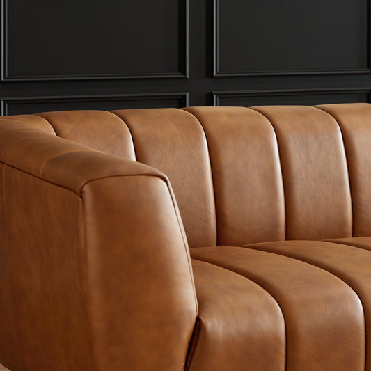 Ava Genuine Italian Tan Leather Channel Tufted Sofa