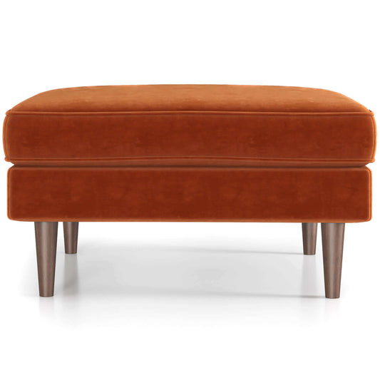 Amber Mid-Century Modern Square Upholstered Ottoman Orange