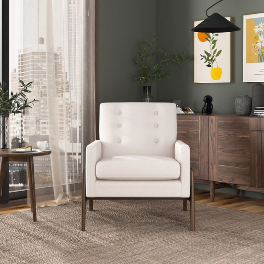 Cole Mid-Century Modern Solid Wood Beige Velvet Lounge Chair