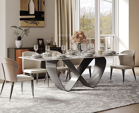 Material:Tabletop: 12mm Glossy Sintered Stone Tabletop/Base: Carbon Steel Base
