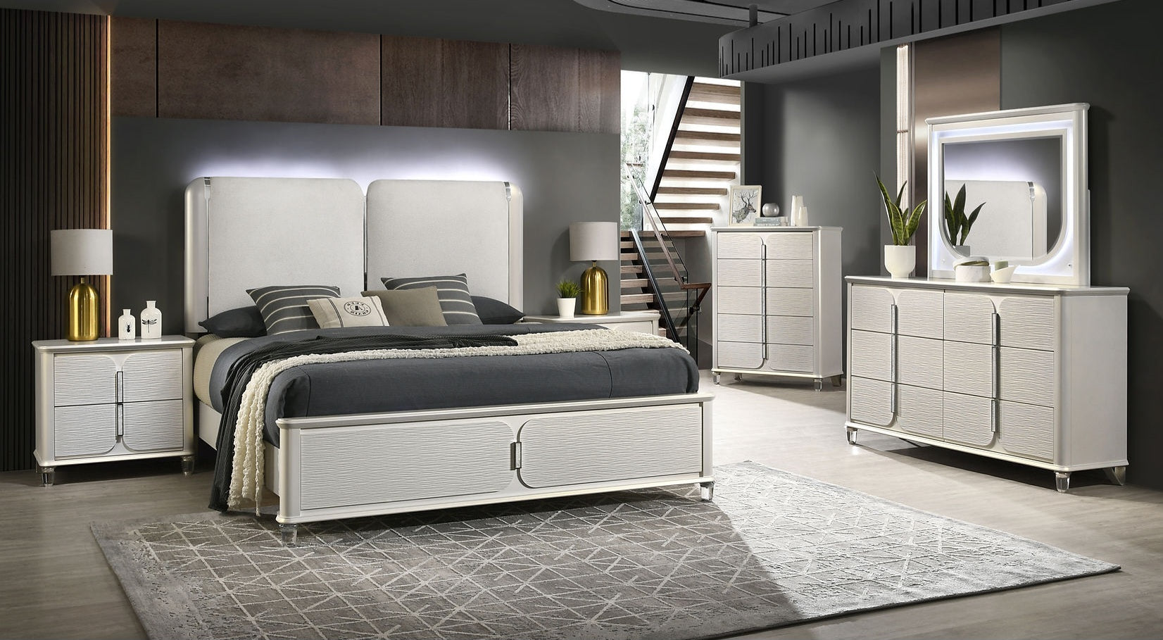 Amara Pearl White Finish Panel Bedroom Set B6300