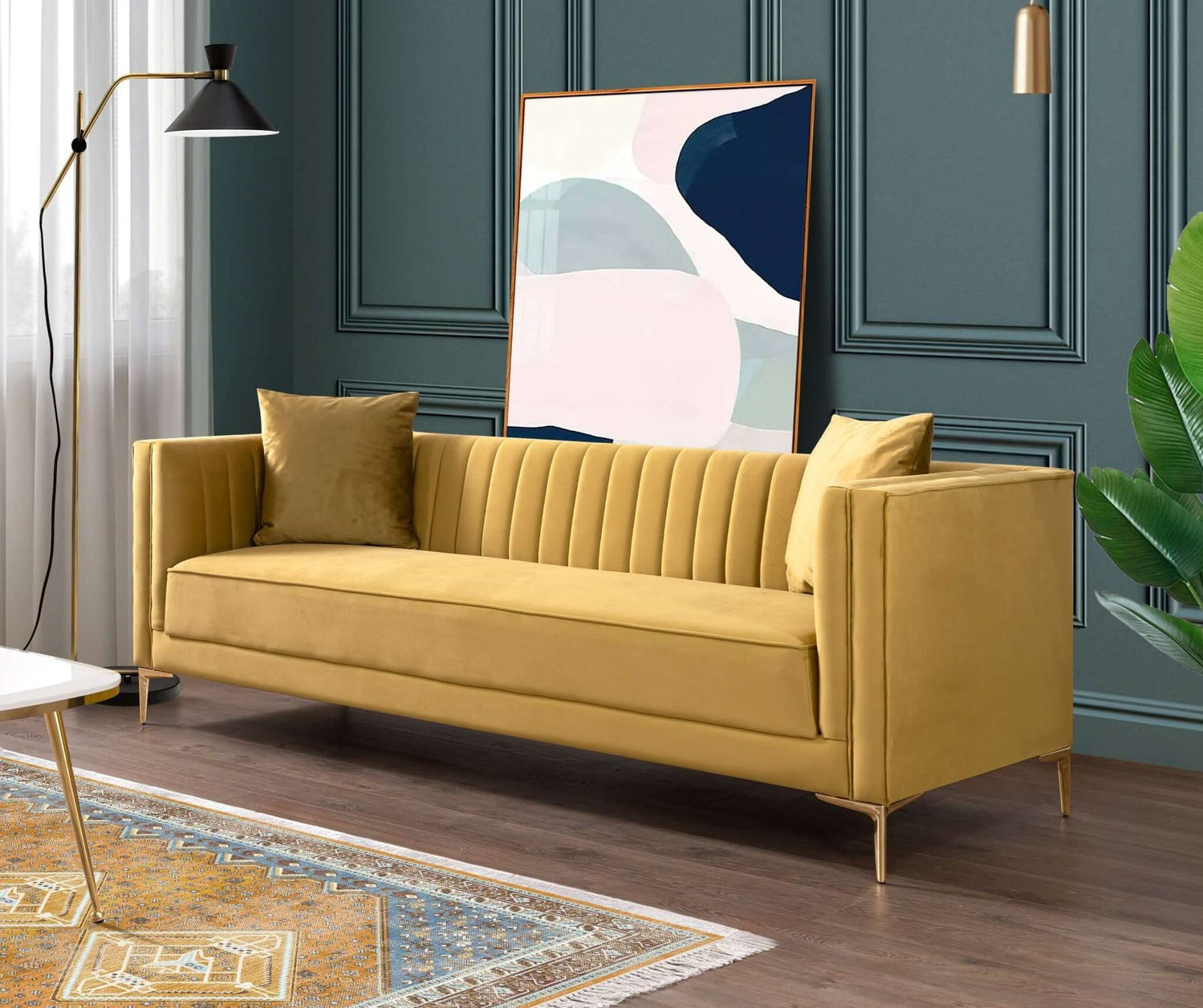 Angelina 84" Mid-Century Modern Mustard Velvet Tufted Sofa