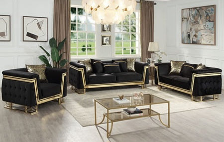 Ashton Black/Gold Velvet Sofa and Loveseat S4040