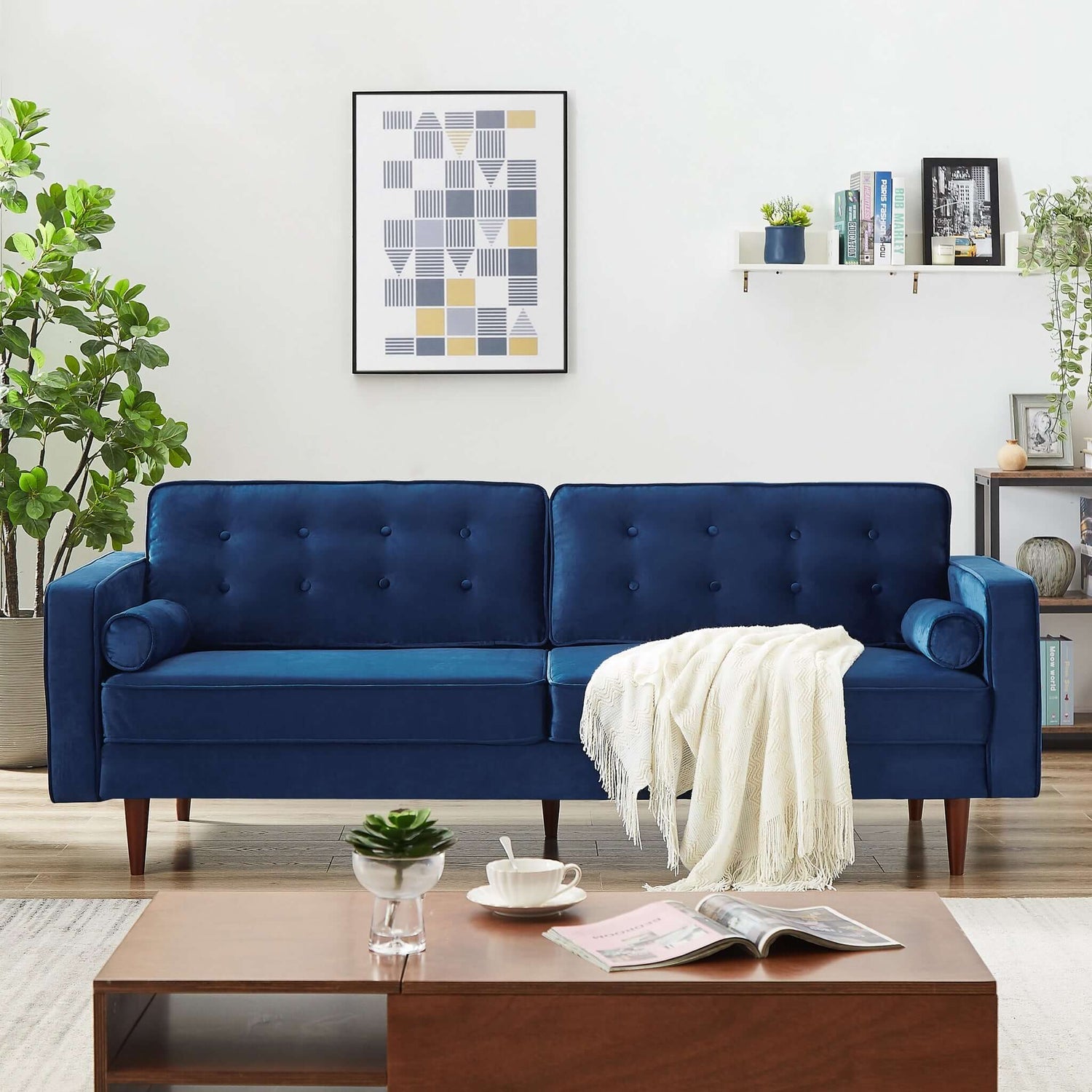 Casey 84" Mid-Century Modern Blue Velvet Sofa