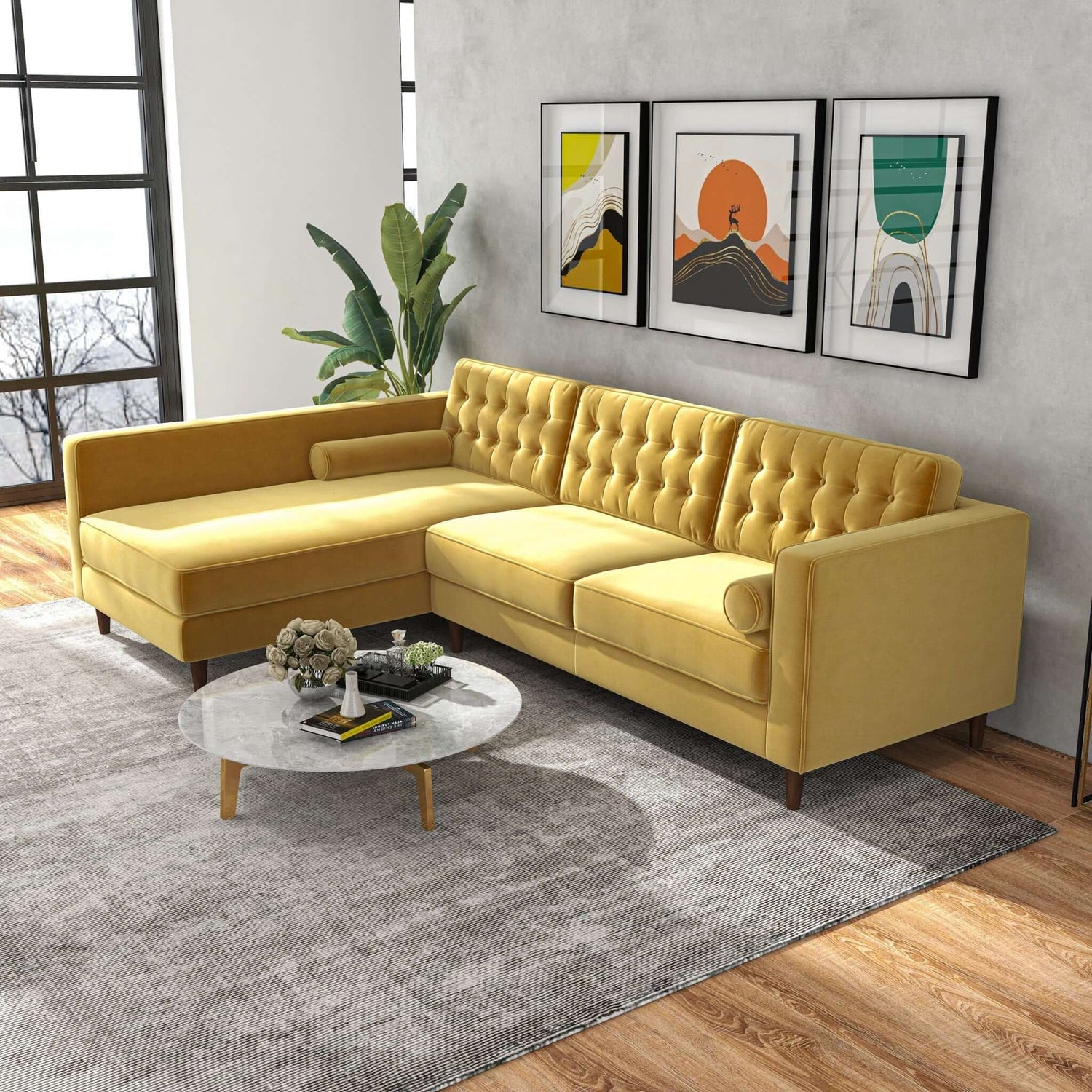 Christian 103" Mid-Century Modern Yellow Velvet Sectional