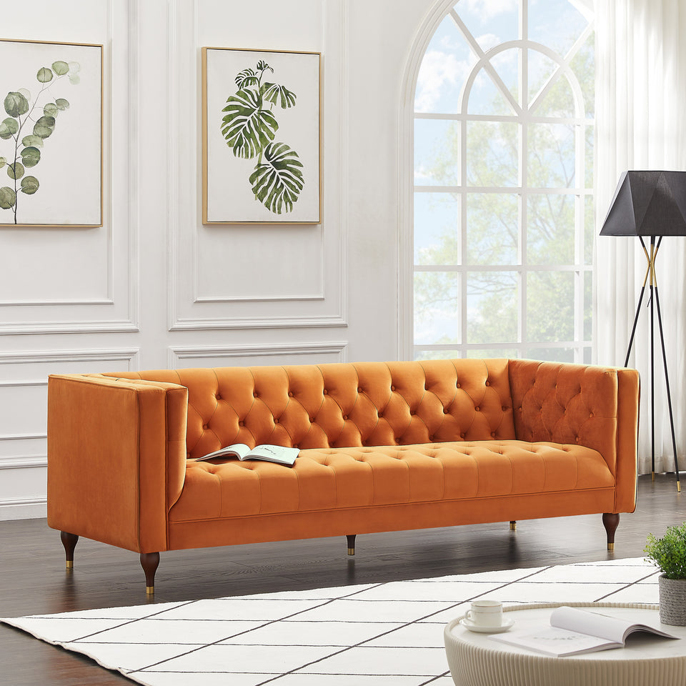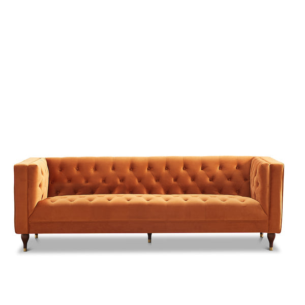 Evelyn 88" Burnt Orange Velvet Luxury Chesterfield Sofa