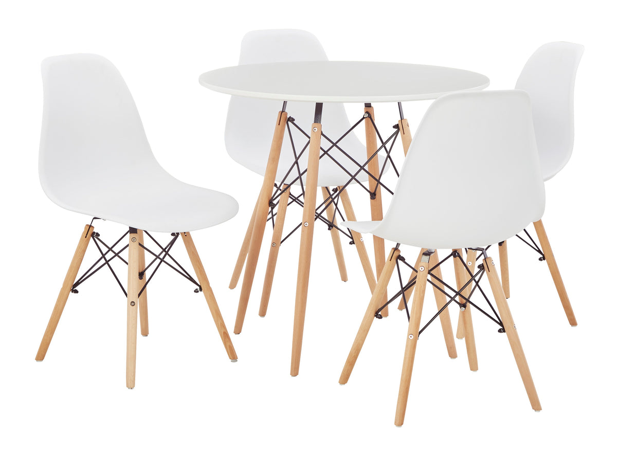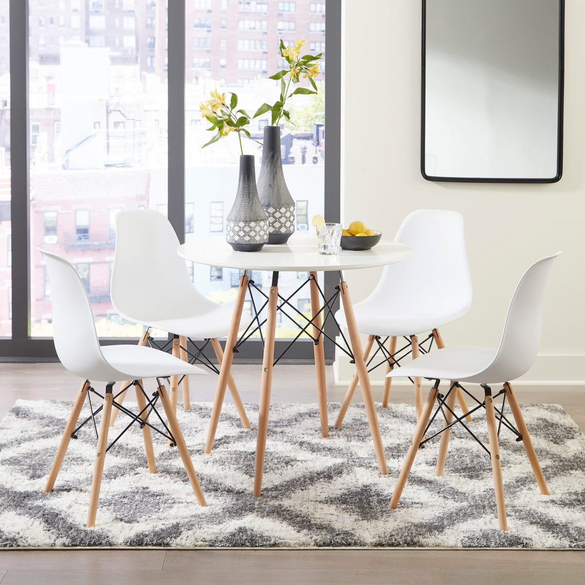 A contemporary take on a classic look, this dining room set adds a touch of artistic flair to your dining experience. This 32-inch-round dining table is designed with a small space living in mind. The painted whitetop, supported by a metal framework and solid beech wood legs, is intricately eye-catching, allowing you and your guests to dine in style.