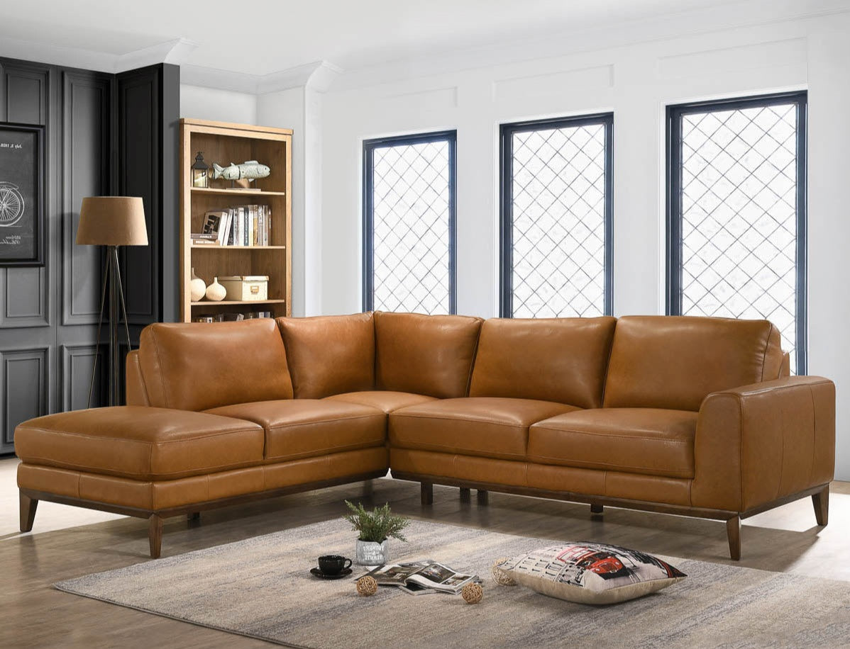 The London Sectional Sofa is the ultimate statement piece to any living space! Enjoy plush high-density foam cushions quickly becoming your favorite spot in your creative space. Mayfair is upholstered in 100% top-grain Aniline Leather imported from Italy. Impeccable craftsmanship ensures long-lasting strength and durability. Assemble in minutes!