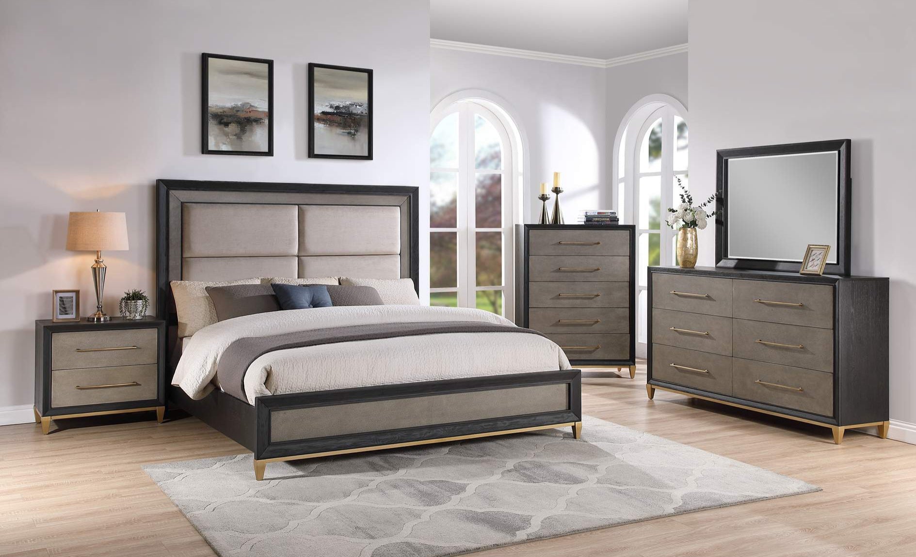 Payson Black/Brown Upholstered Panel Bedroom Set B1200