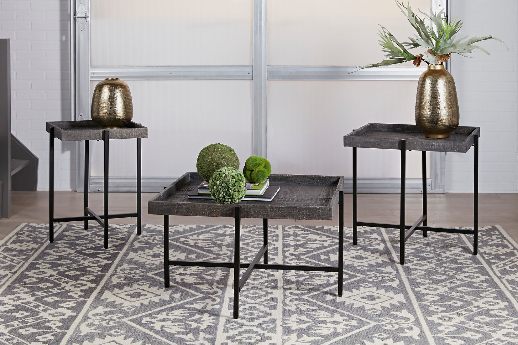 Piperlyn Dark Brown 3pc Coffee Table Set T218