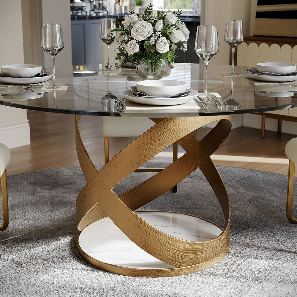 Color: Tempered Glass Top and Bronze Carbon Steel Base