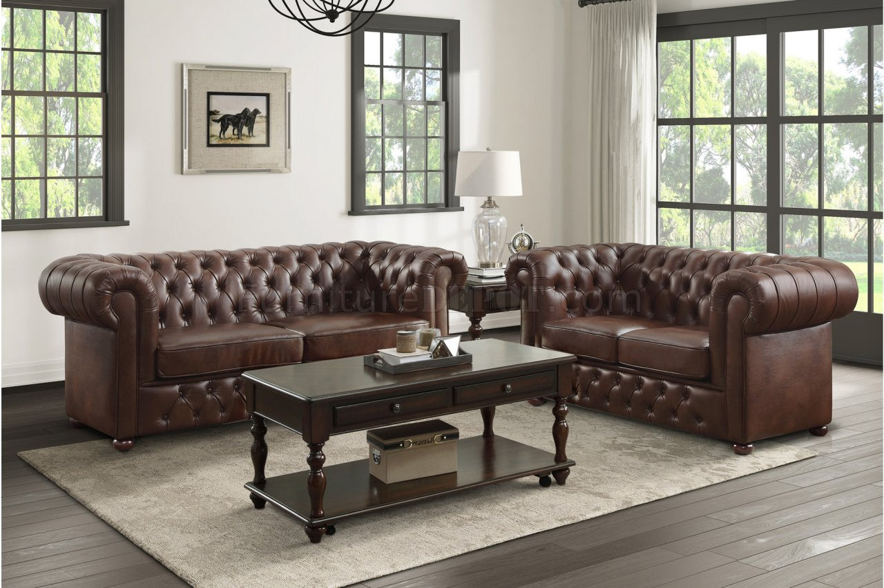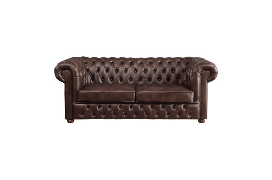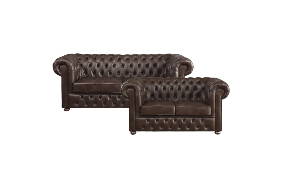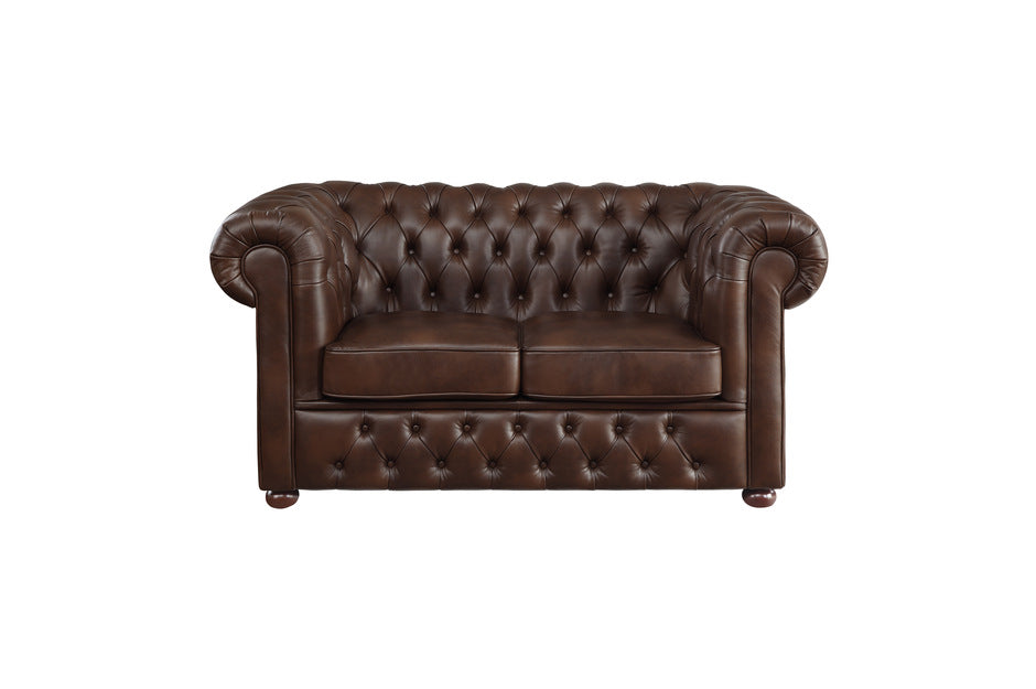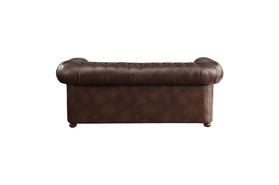 With a look that would be at home in the poshest of lounges, the Tiverton’s traditional design and classic accenting will be a grand addition to your classically styled living room. The Chesterfield-style seating group is offered in brown breathable faux leather upholstery and features the classic accenting of button tufting, defining welt and heavily rolled arms.