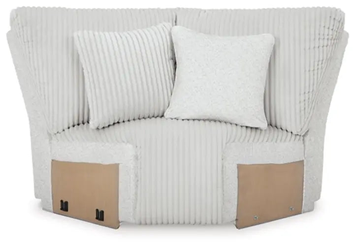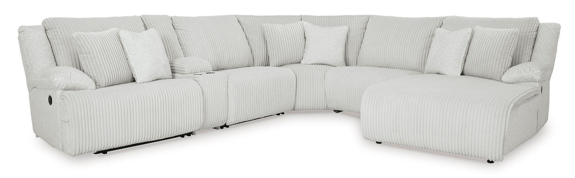 - Includes 6 pieces: left-arm facing recliner, armless recliner, armless chair, console with storage, wedge and right-arm facing press-back chaise