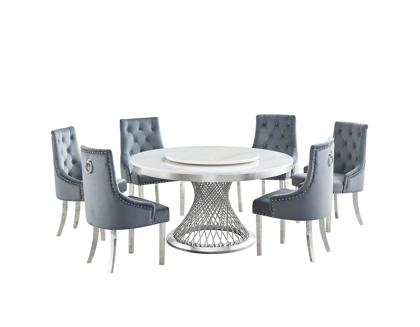 Unico White/Grey Faux Marble Dining Set D605