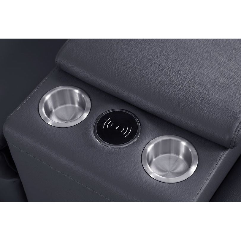 Introducing the exquisite Picasso Sectional in a refreshing Dark Grey hue, a testament to modern Contemporary Style. Crafted with meticulous attention to detail, this sectional features a harmonious blend of luxury and functionality. The Leather Match upholstery offers a perfect balance between opulence and practicality. Equipped with three Power Recliners and two Power Headrests, this sectional ensures personalized comfort at your fingertips. The thoughtfully designed Console comes with convenient Cupholders, allowing you to relish your favorite beverages while lounging. To keep you connected, a built-in Wireless Charger ensures your devices stay powered without interruption. Elevate your living space with the Picasso Sectional, where sophistication and innovation converge seamlessly.