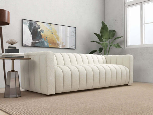 Mason 94" White Luxury Tight Back Curvy Boucle Couch