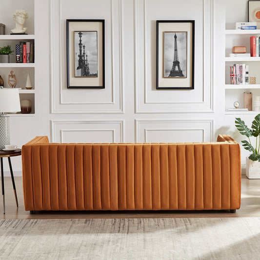 Anthony 88" Mid-Century Modern Burnt Orange Velvet Sofa