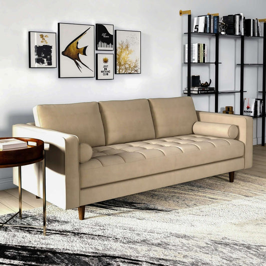 Anthony 88" Mid-Century Modern Cream Velvet Sofa