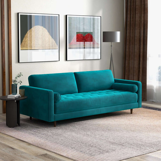 Anthony 88" Mid-Century Modern Teal Velvet Sofa