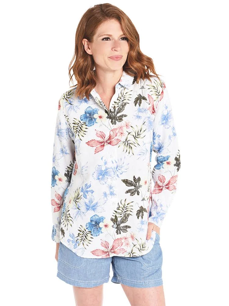 Tommy Bahama Eros Botanical Linen Boyfriend Shirt - White GJQ4G_DA644