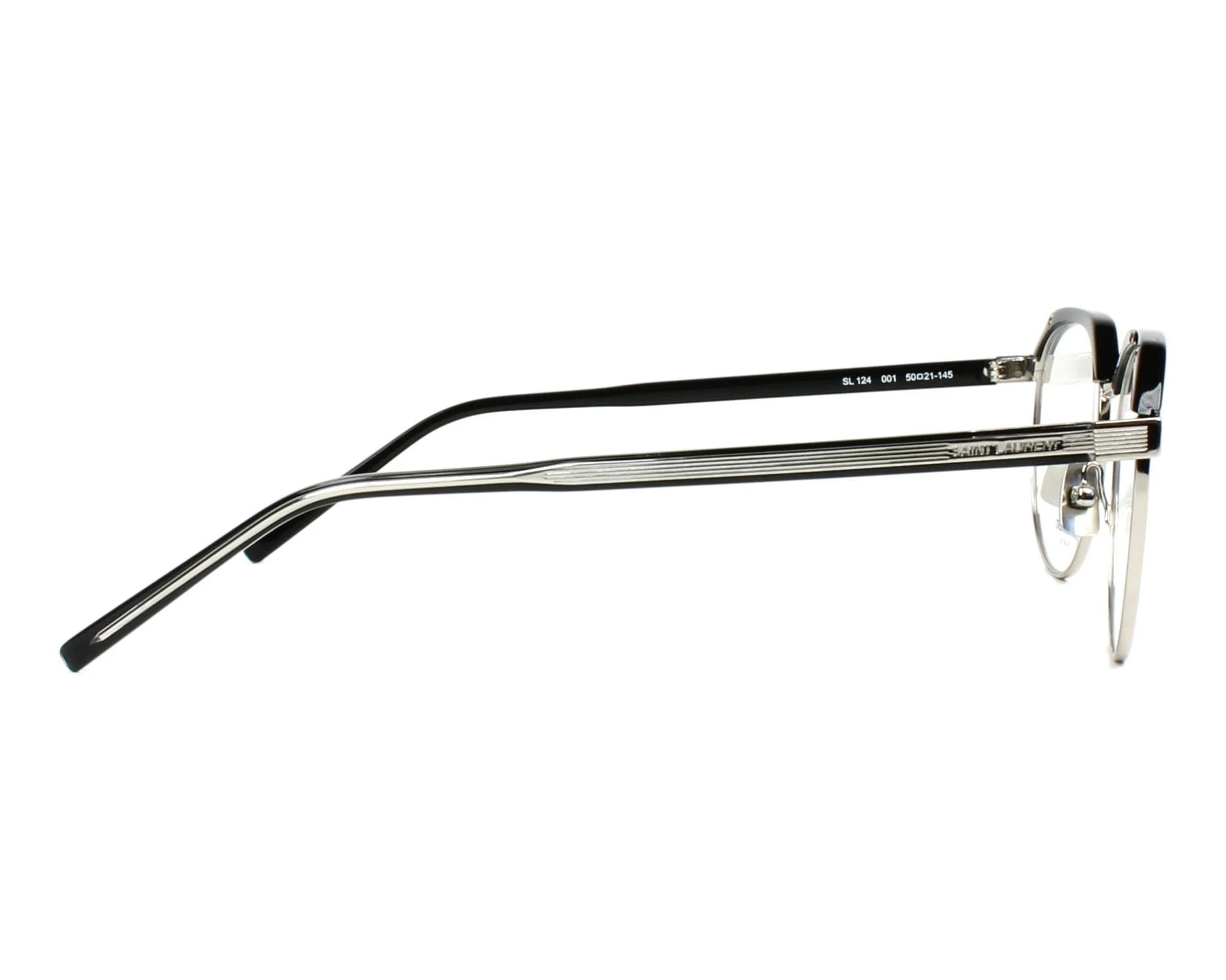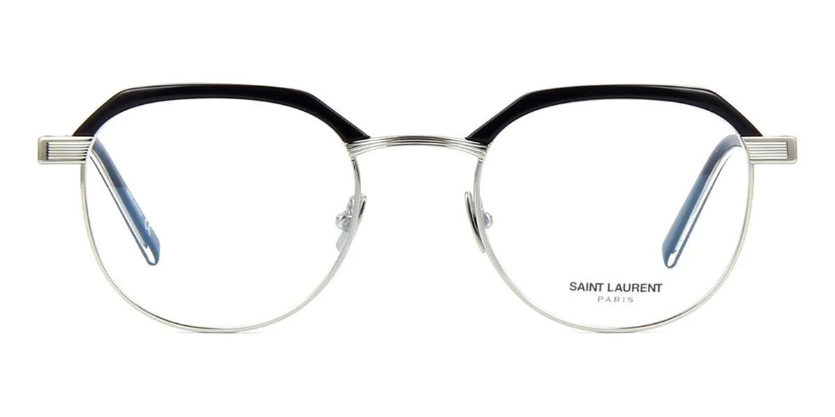 Round combination style. 3d laser-engraved corner angle and striped metal details. 70s retro taste: acetate eylashes metal nose pads. Light thickness of the material. Saint laurent logo engraved by laser on the external part of both temples. 805637604209250mm.