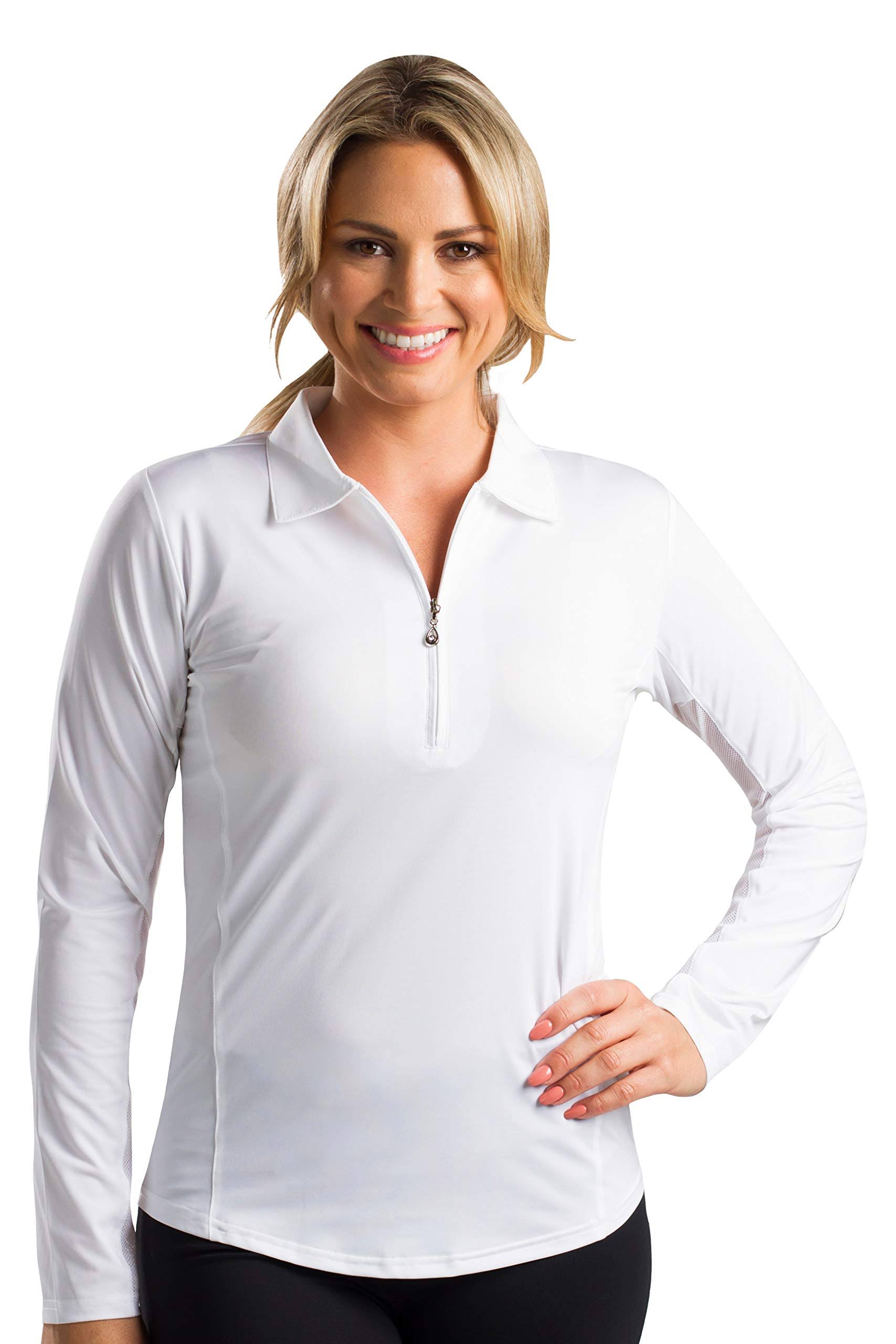 SunGlow: 92% Cooling Poly 8% Stretch Spandex Zipper closure Normal cycle Permanent UPF 50 Sun Protection SunGlow fabric provides permanent cooling Moisture wicking, quick drying Easy care - can be washed in normal cycle Great for: Golf, Tennis, Equestrian, Sailing, Walking, Hiking, Boating, Fly Fishing! The SanSoleil SunGlow Zip Polo /b offers moisture wicking, quick dry for cooling comfort and UPF 50 Protection. SunGlow fabric has a silky hand feel and wonderful drape - it's also naturally wrinkle free! p SunGlow is very light-weight and wicks perspiration, cooling the skin by up to 5%. Plus SanSoleil's cooling mesh inserts create air flow around the body, cooling even more! (Here's a hint. If you're wearing in dry, arid areas carry a spray bottle with water. Spray a little on the garments arms and shoulders. You'll be amazed at the immediate cooling as the water evaporates!) p These garments are great for sports that require fabrics that move and are lightweight for exertion in the sun's heat. Our zip polo's collar stand can be worn up to protect the neck. p Great for: Golf, Tennis, Equestrian, Sailing, Walking, Hiking, Boating, Fly Fishing!
