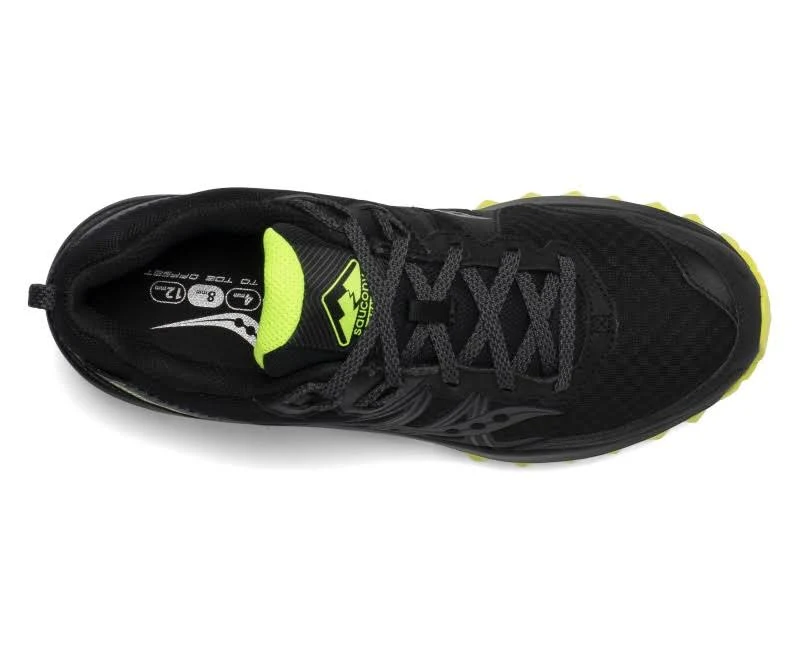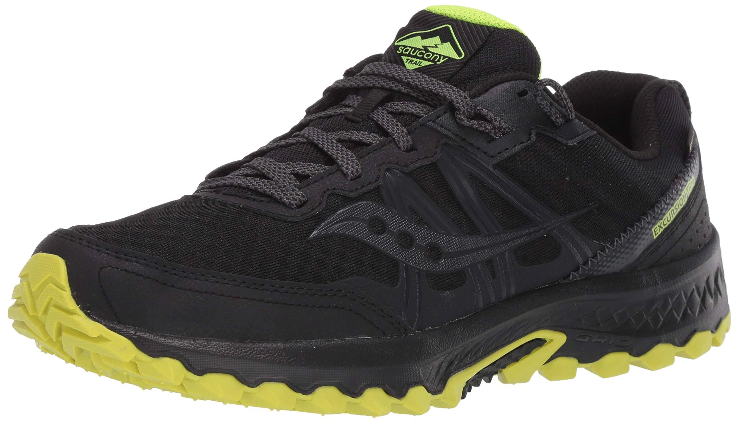 The Saucony Excursion TR14 GTX for men are sturdy trail running shoes. The upper of the shoes is made of GORE-TEX material, which ensures that the shoes are breathable and waterproof all at the same time. The mesh material has been specially designed for trail running. The upper features strategically placed reinforcements that help keep the feet in place. The midsole is made of VERSARUN material. This foam provides more cushioning and keeps you comfortable no matter the surface. The outsole is made of two individual parts and thereby stimulates the heel-to-toe transition of the feet. The outsole provides a lot of grip thanks to the specially designed pattern. It is made of carbon fibres, which makes the outsole very durable and strong, and also helps protect your feet.