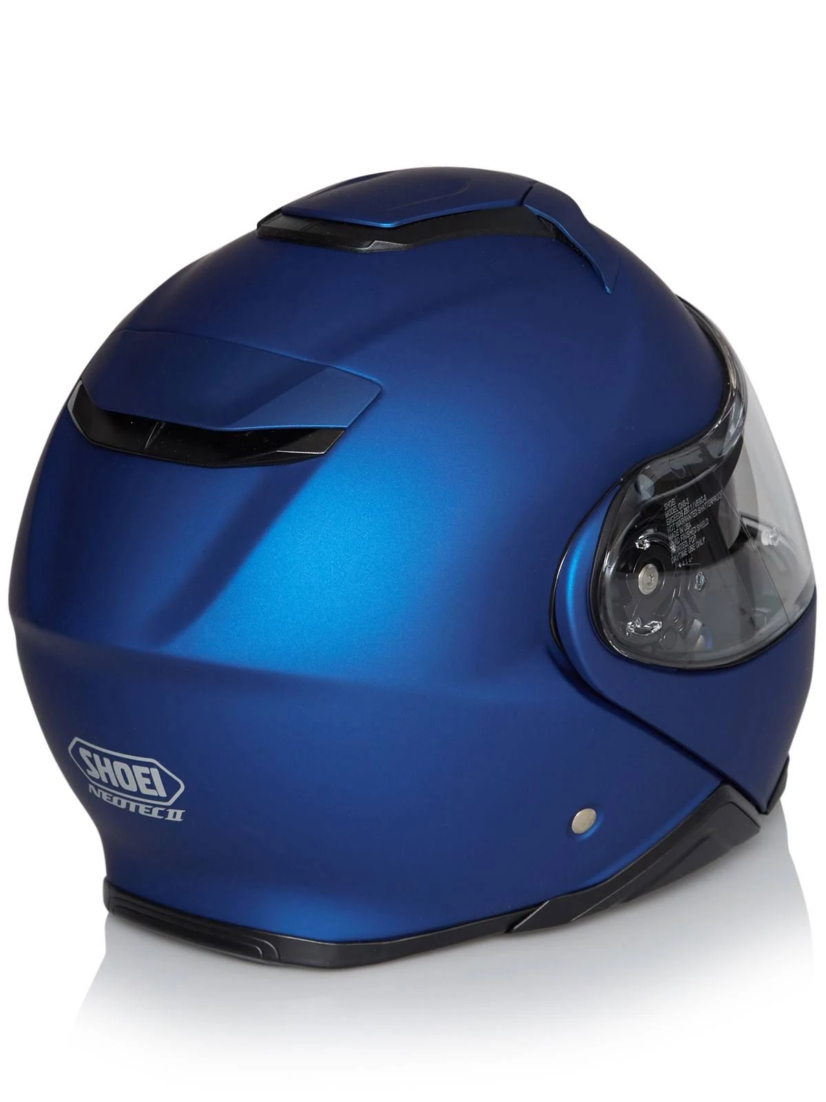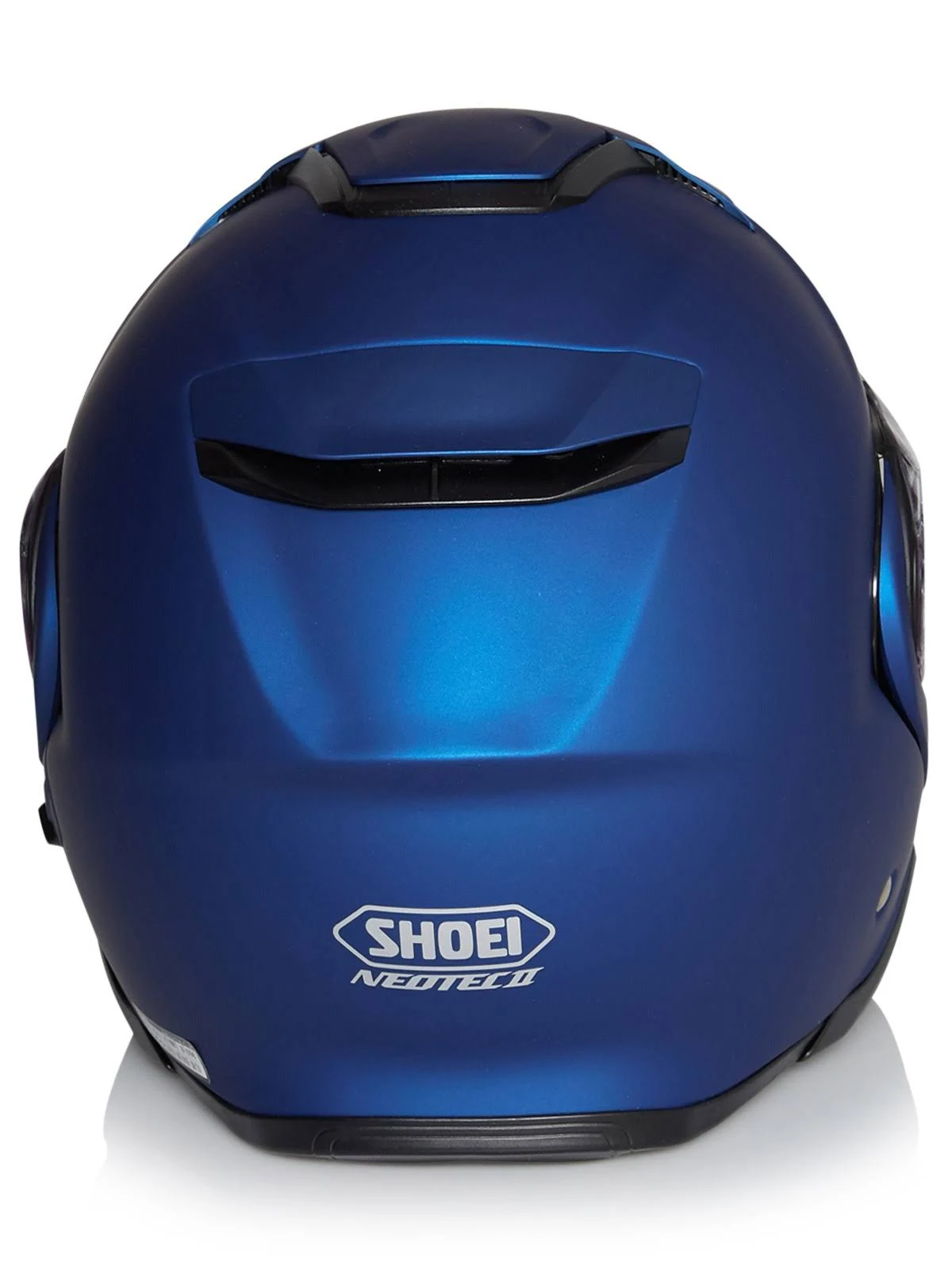 The Shoei Neotec II motorcycle helmet is Shoei's latest flip front touring model. This Shoei Neotec II motorcycle helmet comes with an integral internal drop down sun visor. The Shoei Neotec II motorcycle helmet is also prepared for use with the Sena communication system available separately, this system integrates seamlessly into the helmet without compromising the helmet design.