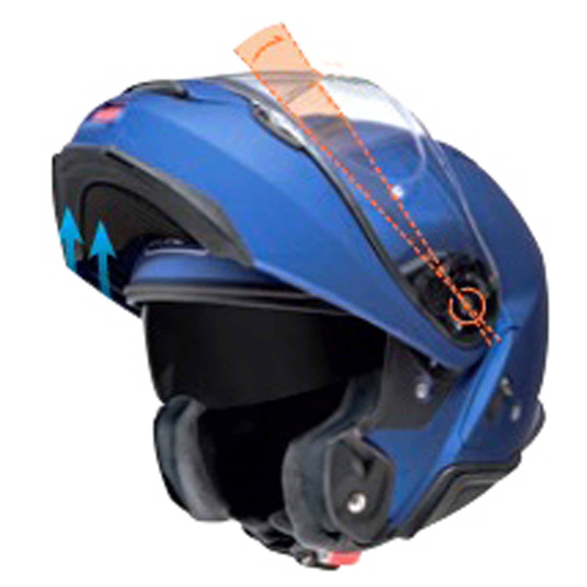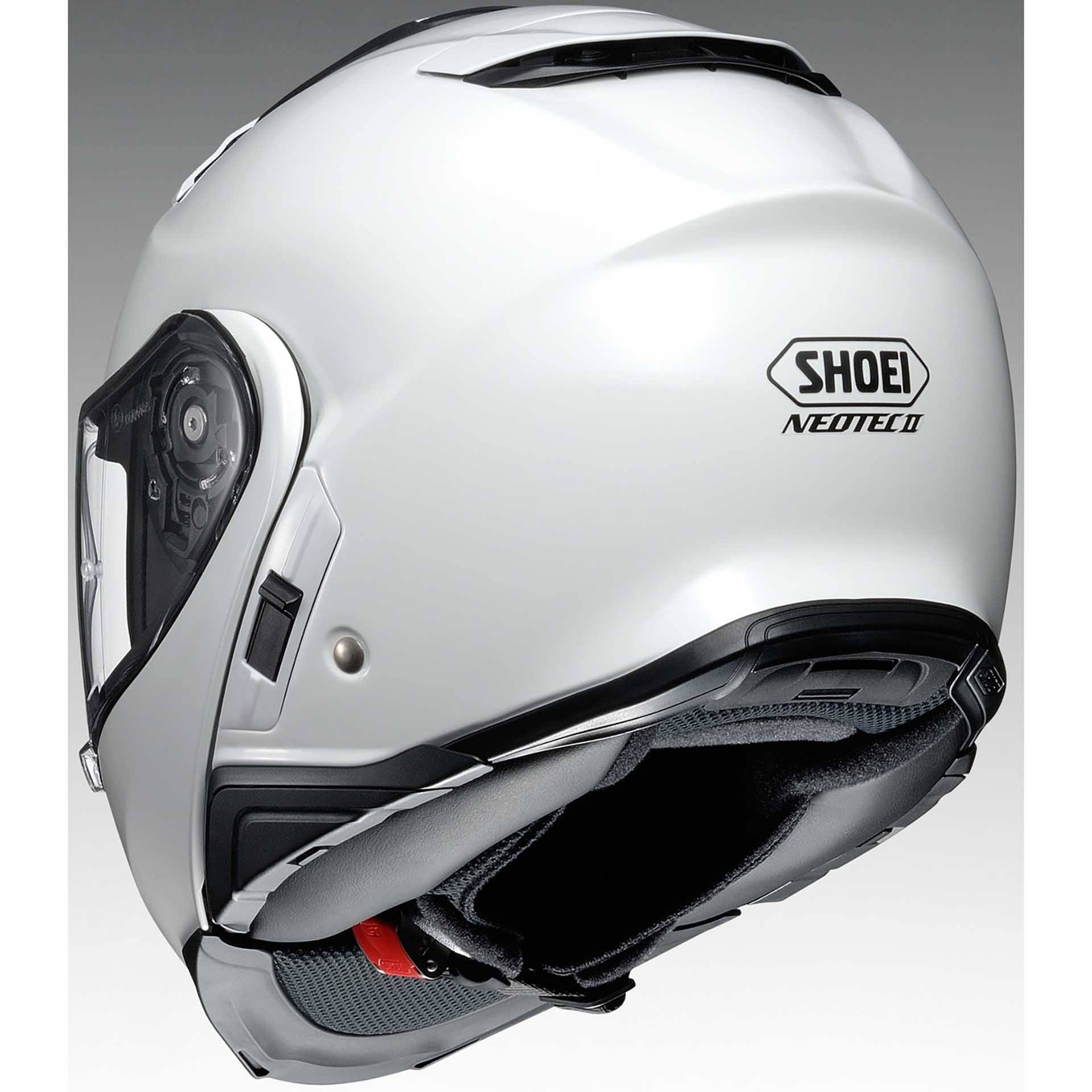 Shoei Neotec II Helmet The Neotec 2 Helmet was designed by Shoei for today's riders. The versatility of a 2-in-1 helmet combined with an aerodynamic shell, internal sun shield, Pinlock-prepared face shield and a removable and washable interior make the Neotec the go-to helmet for selective motorcyclists. The chinbar can be closed in one easy motion and the cheek pads are eyeglass friendly. The new Noise Isolator cheek pads deflect wind and reduce unwanted noise while the airtight window bead also reduces noise and manages airflow around the helmet. Aerodynamic Shell Design Aerodynamic properties are maximized through extensive wind tunnel testing Dual-layer EPS liner enhances impact absorption and ventilation Four shell sizes and five liners present increased fit options that help to comfortably fit most head sizes from XS through XXL Shoeis exclusive, state-of-the-art shell forming technology incorporates the aerodynamic advantages of a spoiler right into the shell of the Neotec 2 Vortex Generator on the face cover and visor works to reduce noise and manage air flow around the helmet Flip-Up Face Cover and Face Shield 360 Pivot Locking System made of high quality stainlees steel components, ensures a safe and secure closure Enlarged single-button release for chin bar and shield allows ease of use with riding gloves Increased space inside the chin bar was added by adjusting the shape to create a smart and light design Opening the face cover up will automatically close the face shield Sun Shield System Built-in QSV-1 inner sun shield gives riders instant relief from sun glare in one quick motion Meets ANSI Z80.3-2010 standard for non-prescription eyeglasses Large and easy to reach slide switch activates the 3D injection-molded inner sun shield Distortion-free shield blocks 99 of harmful UV rays Forehead area of the outer shell is raised slightly to accommodate the internal sun shield. This allows the integrity of the helmets inner EPS liner to remain intact.