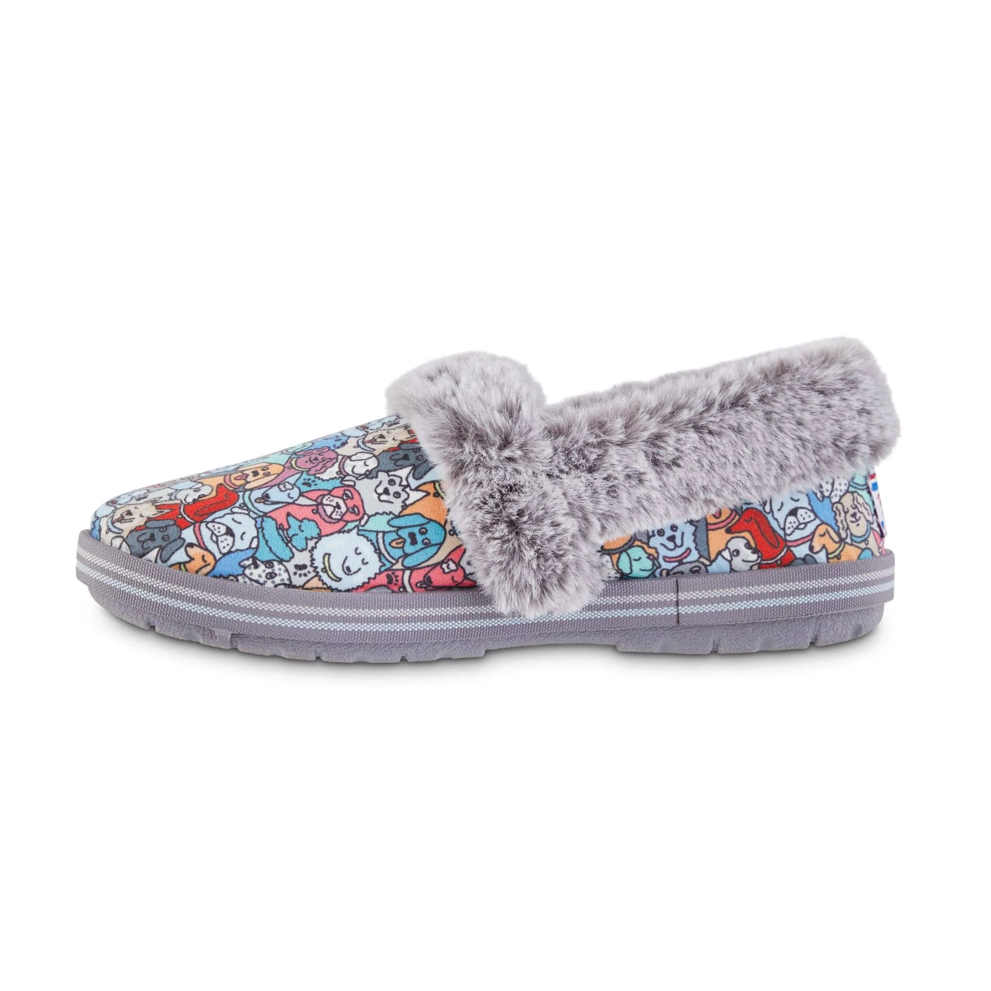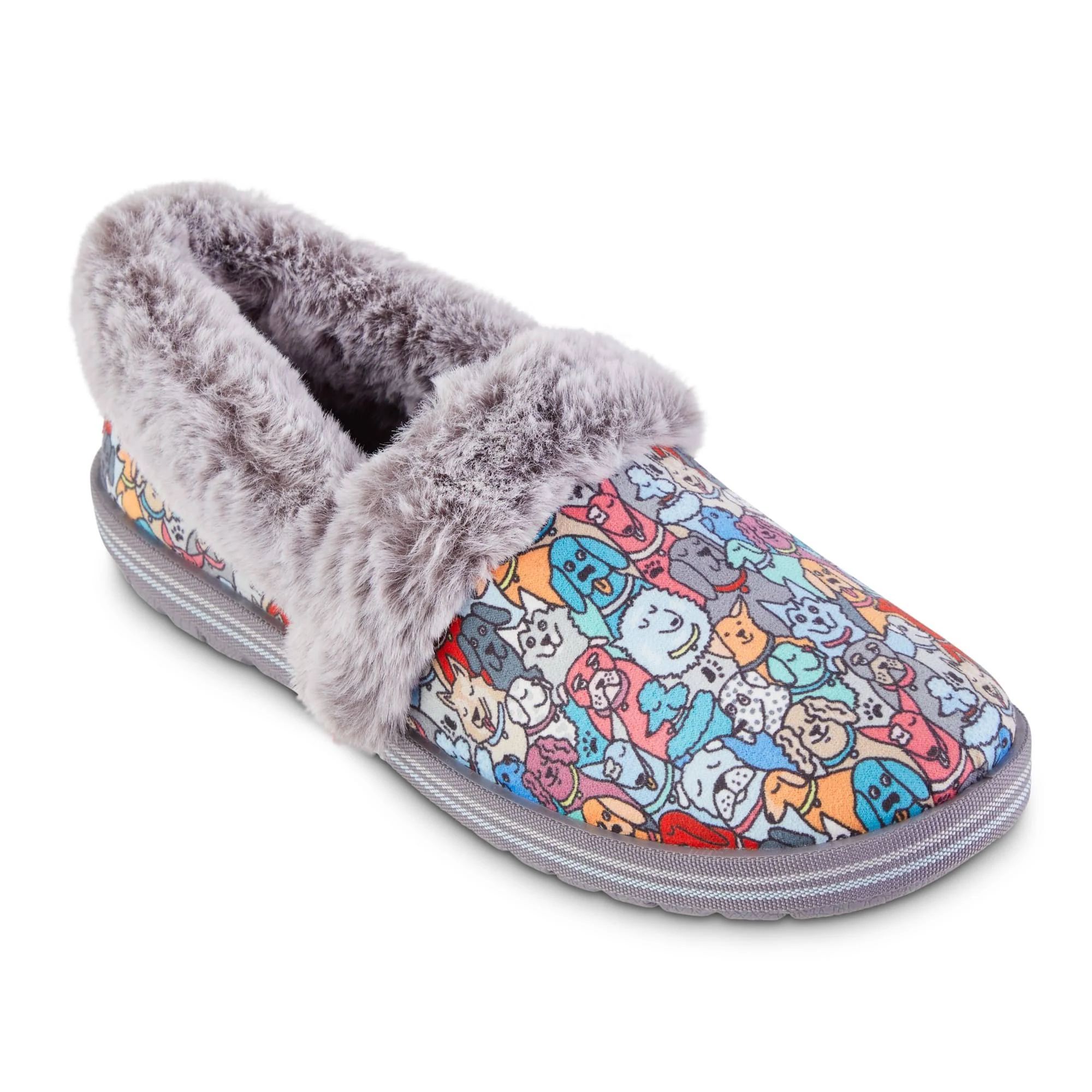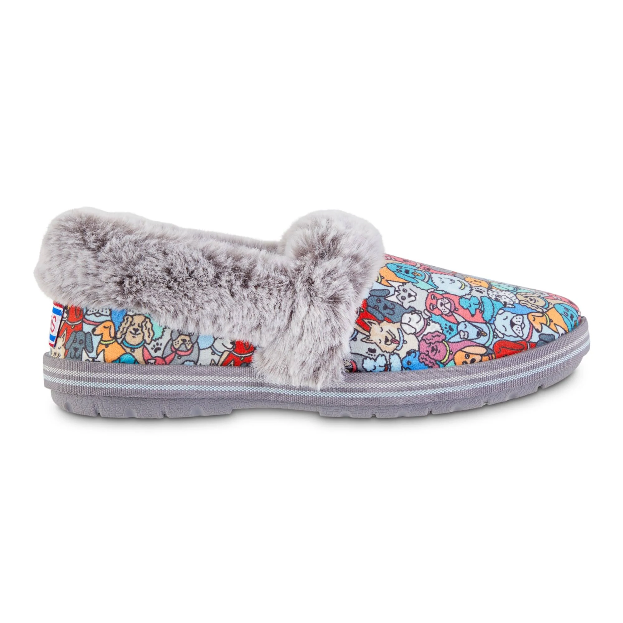 Stay cozy warm and celebrate your furry pals in the Skechers BOBS for Dogs Too Cozy - Pooch Parade shoe. Soft microfiber suede fabric upper in a slip on casual comfort slipper with colorful Woof Parade dogs print design, faux fur lining and Memory Foam footbed. BOBS helps make a difference for animals and kids - learn more here.