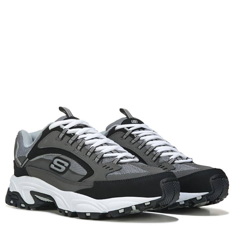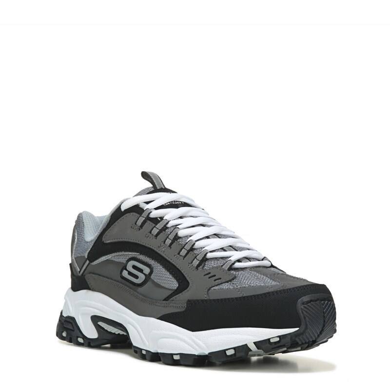 p Stay comfortable on the go in the Stamina Cutback Memory Foam Wide Sneaker from Skechers p ul Leather synthetic and mesh fabric upper in a casual athletic sneaker style with a round toe Lace up front Mesh for cooling Durable synthetic toe and heel bumper overlays Reflective synthetic edging trim Side S Logo Padded tongue and collar Soft fabric lining Memory Foam cushioned comfort insole Shock absorbing midsole Dura Grip flexible rubber high traction outsole All items are in Wide widths ul