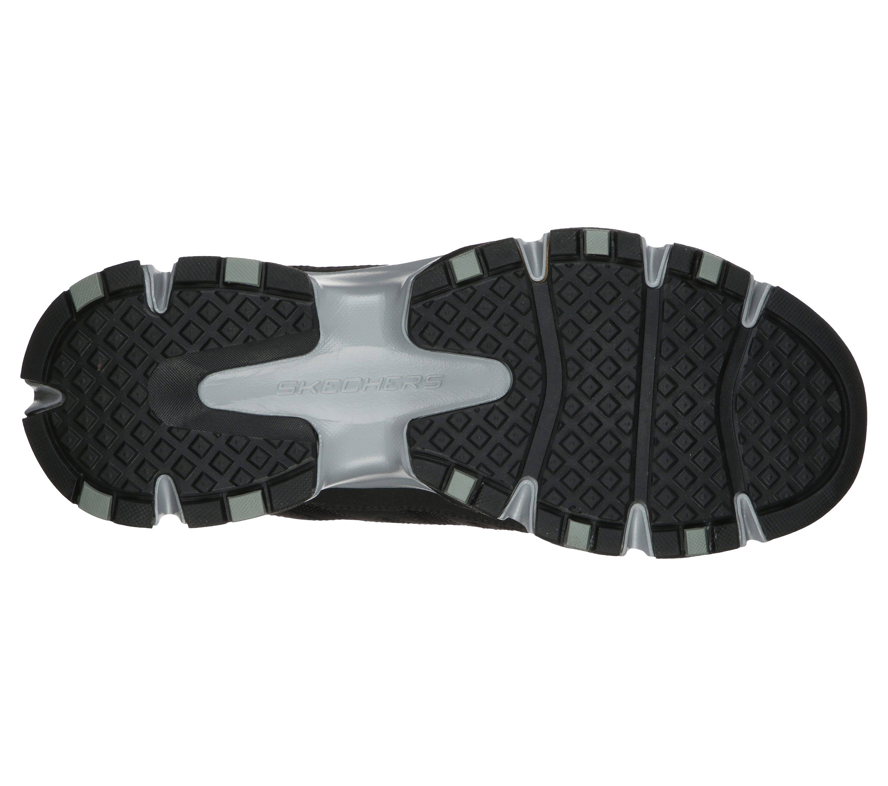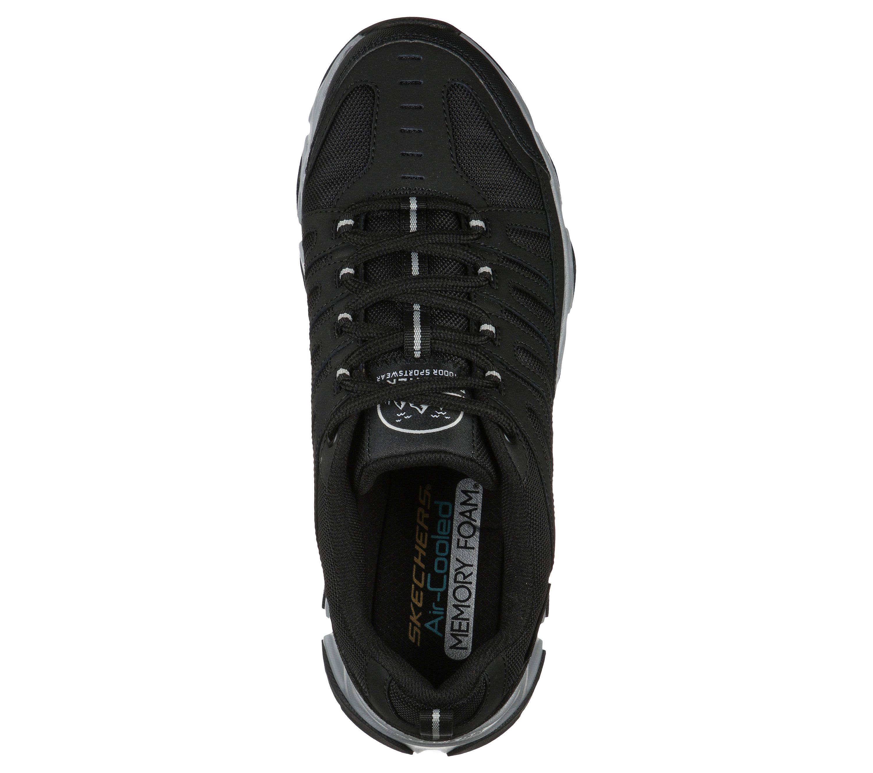 Maintain control and comfort on or off the trail wearing the Skechers Relaxed Fit Crossbar - Stilholt shoe. Smooth action leather, synthetic and mesh fabric upper in a lace up athletic trail walking and hiking shoe with stitching and overlay accents. Air-Cooled Memory Foam insole, comfort all terrain outsole.