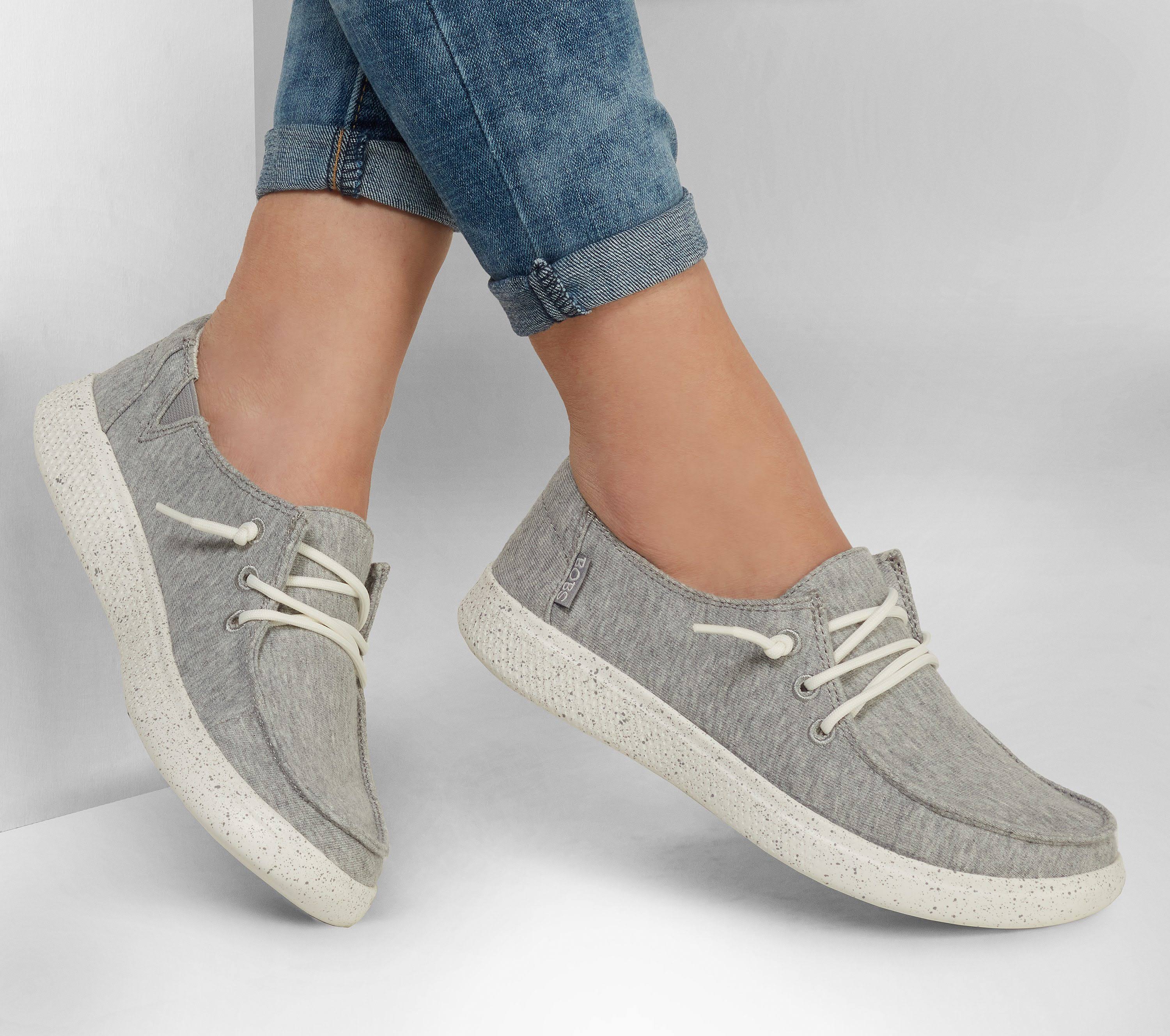 For information on how BOBS contributes to the community, please visit the page. The BOBS from SKECHERS Bobs Skipper boat shoe will complement your weekend-ready style with a slip-on construction, knit fabric upper material, and a laced instep panel with knotted ends. Rounded moc toe boasts a raised stitch seam in front. Signature logo tag at the side panel. Breathable fabric lining. Memory Foam cushioned footbed provides added comfort. Flexible rubber outsole. Imported. Measurements: Weight: 6 oz Product measurements were taken using size 8.5, width B - Medium. Please note that measurements may vary by size. Weight of footwear is based on a single item, not a pair.