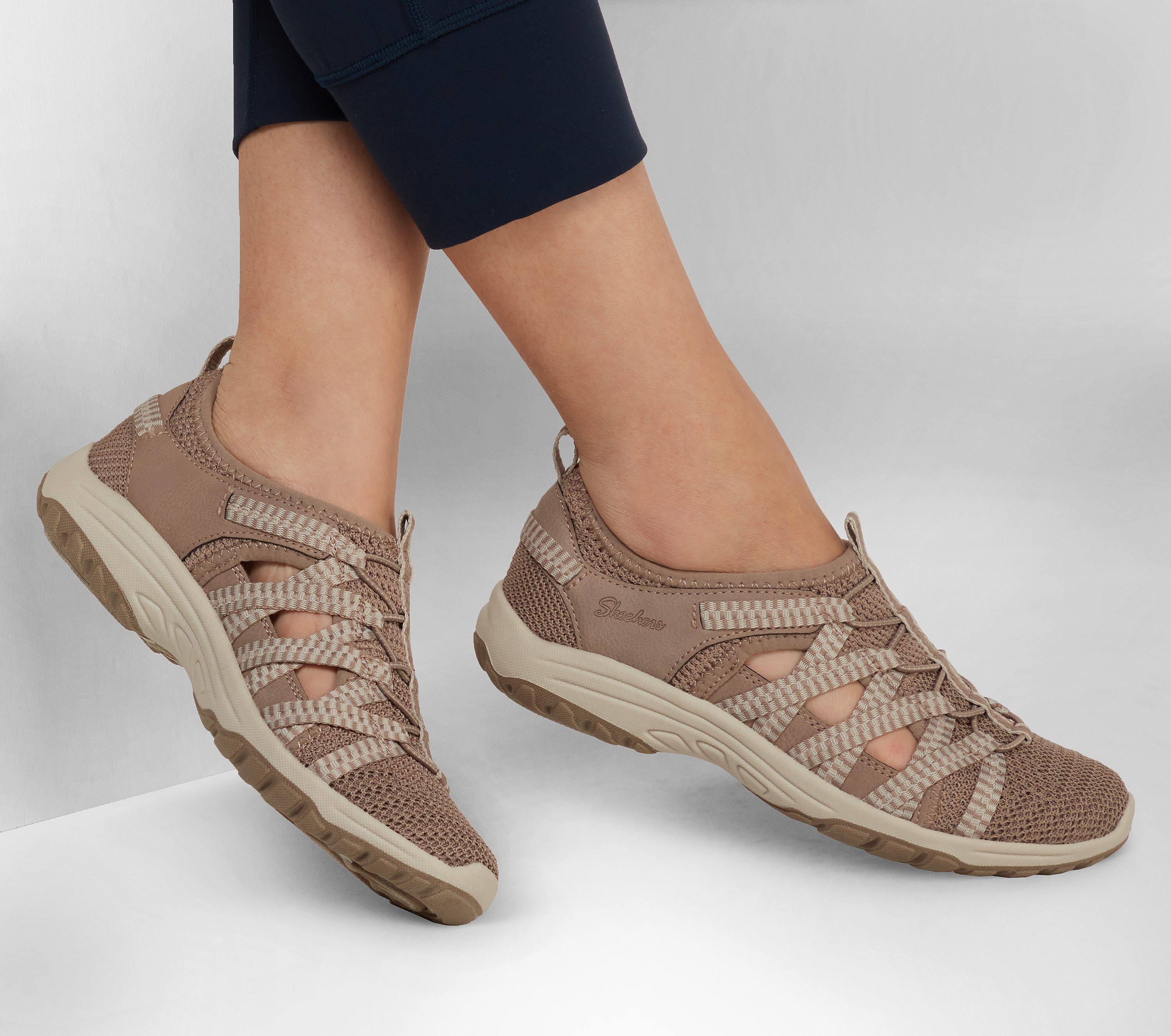 A warm-weather favorite gets a comfort update in the Skechers Relaxed Fit Reggae Fest 2.0 - Happy Getaway shoe. This slip-on sandal sneaker hybrid features a breathable mesh and synthetic upper with a bungee-laced front, cushioned Luxe Foam insole and classic Reggae outsole.