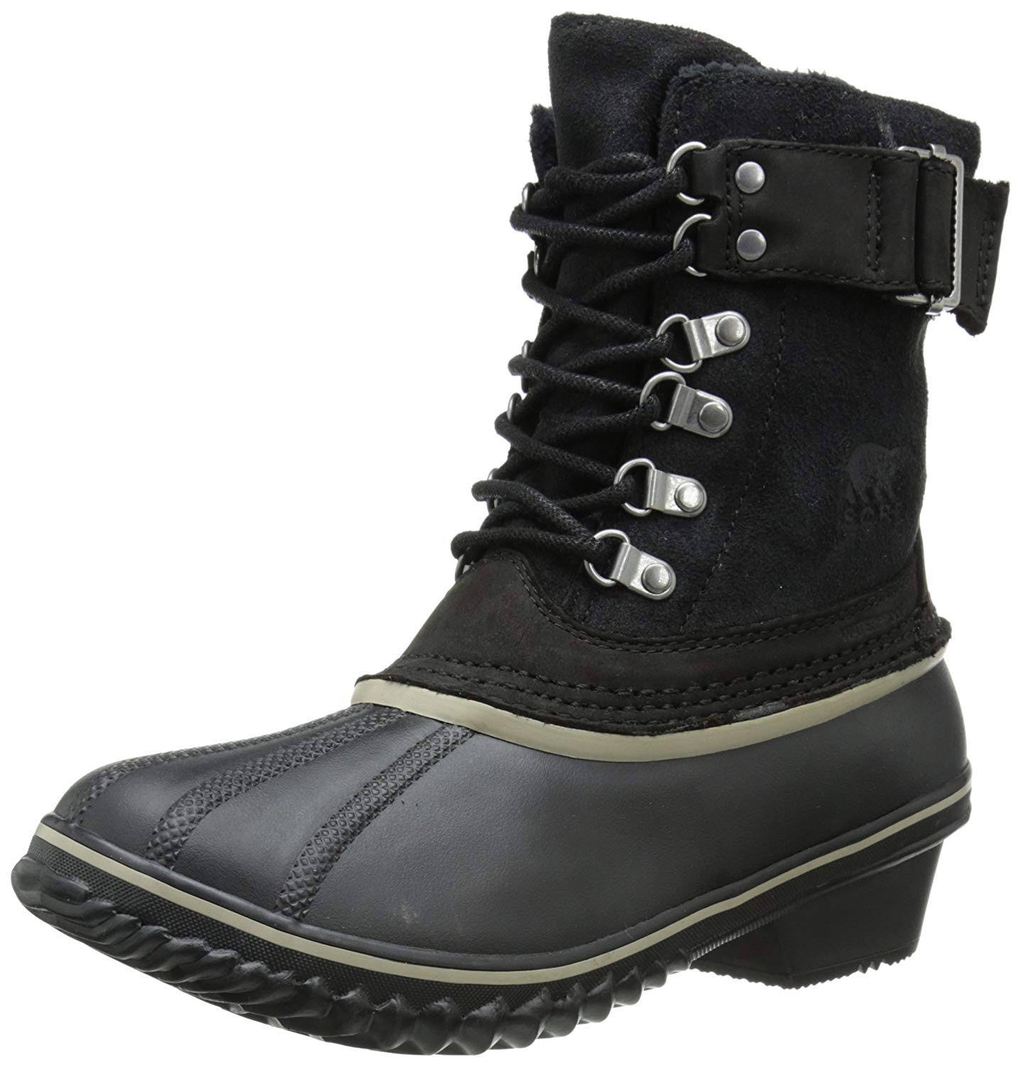 The warm Winter Fancy Lace II boot by Sorel keeps you feeling secure with its durable lacing system and unbelievably stylish with its leather and rubber construction that is ideal for wintertime fashion! Waterproof full grain leather upper. Secure lacing system with D-ring metal hardware. Seam-sealed bootie construction keeps out the wet elements for a drier, more comfortable foot environment. Features both 100g protective insulation and a full fleece lining to keep the cold out in the most frigid temperatures. Microfleece topcover on top of a molded EVA footbed provides added underfoot comfort. Molded EVA footbed with arch support for all-day comfort. Vulcanized rubber midsole for long-lasting support. Insulated waterproof vulcanized light PAC shell with herringbone outsole provides excellent waterproof protection and superior traction on various surfaces. Imported. Weight of footwear is based on a single item, not a pair.