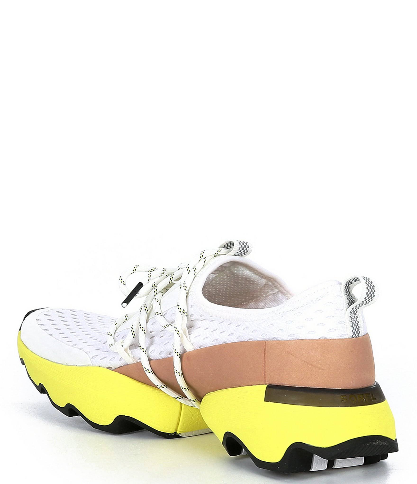 You will love the sporty-chic style of the SOREL Kinetic Impact Lace sneakers! Textile and mesh upper. Traditional lace-up style with fabric laces for a preferred fit. Molded rubber heel detail. Breathable textile lining. Removable, molded PU-like EVA footbed with a textile topcover for excellent underfoot comfort. Molded EVA midsole for added underfoot support and shock absorption. Molded rubber outsole with oversized scalloped sole design for stability. Imported. Product measurements were taken using size 7, width B - Medium. Please note that measurements may vary by size. Weight of footwear is based on a single item, not a pair.