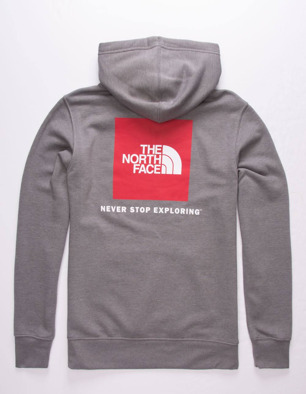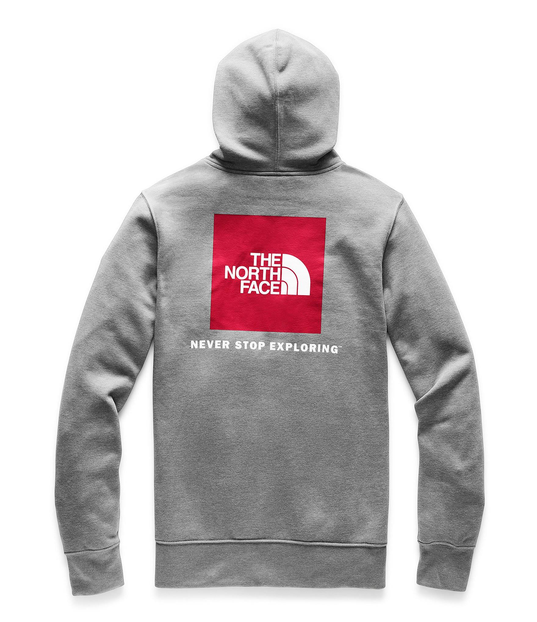 The Mens Red Box Pullover Long-Sleeve Hoodie from The North Face is a medium-weight hooded sweatshirt thats great for a morning hike or cool night by the fire. It features The North Face box logo on the back with a plain front. This fleece pullover has a drawstring hood, a kangaroo pocket, set-in long sleeves, and a ribbed hem and cuffs. The North Face Red Box Pullover Hoodie has a comfortable regular fit that wont restrict your movement. Cotton/polyester fleece. Machine wash. Imported. Sizes: S-3XL. Color: TNF MEDIUM Grey.