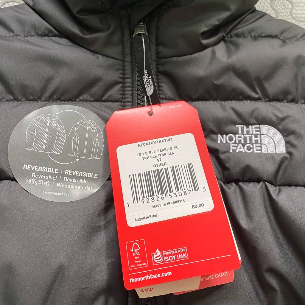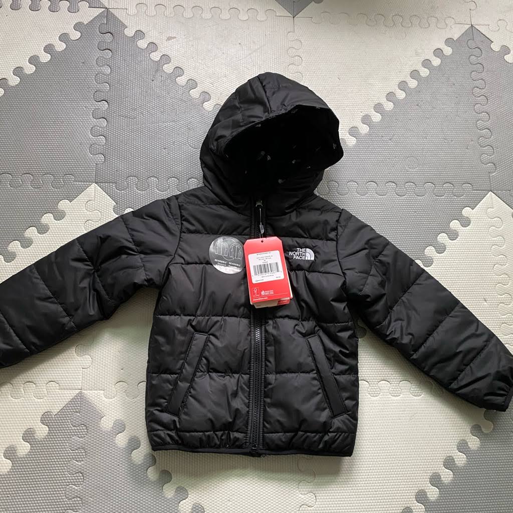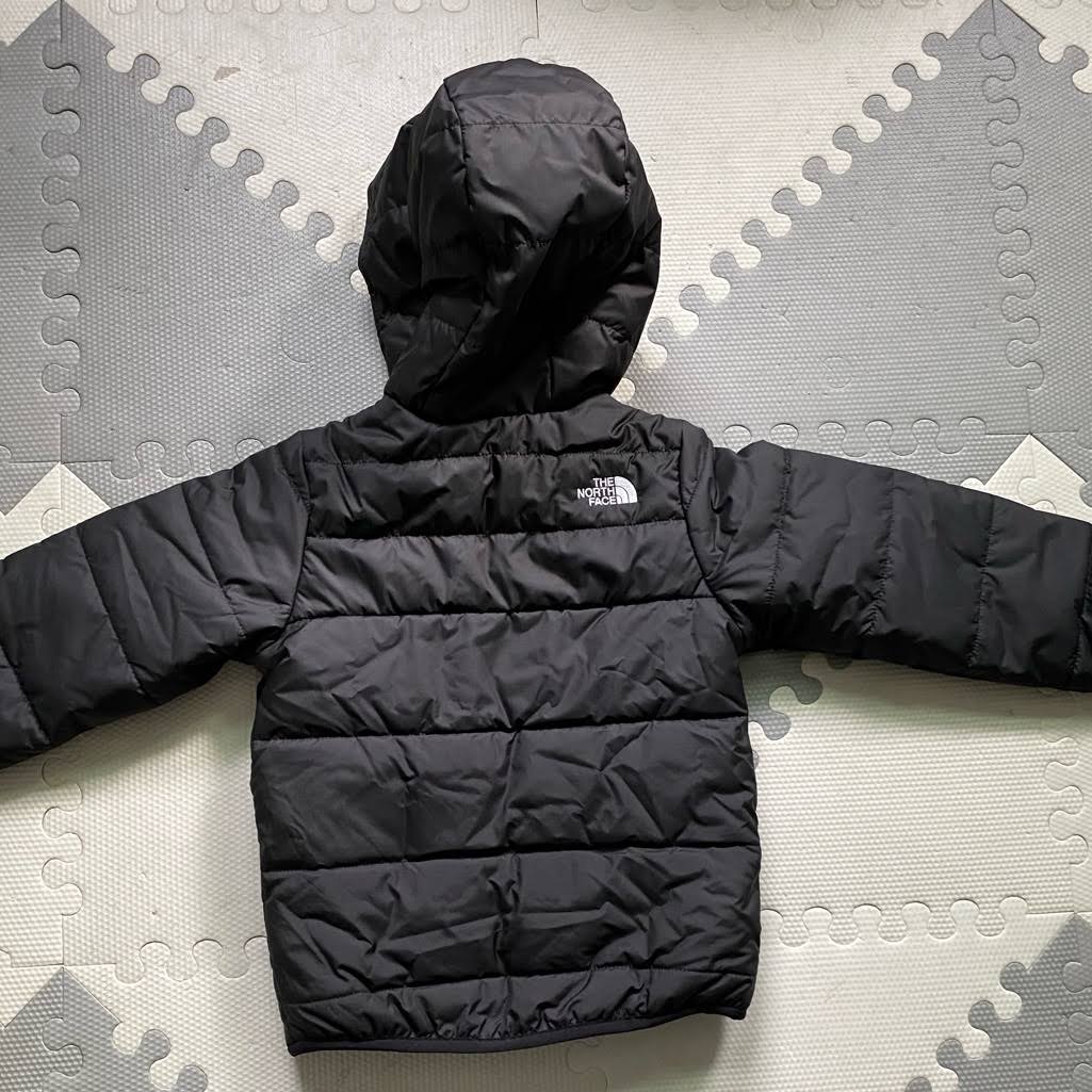 Layer up your little one with this children's Perrito Reversible Jacket from The North Face. In an black colourway with one solid side and a all over branded print to the reverse, this jacket is made from durable recyled poly fabric with a Durable Water Repellent finish to keep 'em warm and dry. It's packed with Heatseeker insulation for lightweight warmth, and features a full zip fastening and a fixed hood for extra coverage. With two side pockets on each side for all their playground essentials, this reversible jacket is finished up with signature The North Face branding in white.