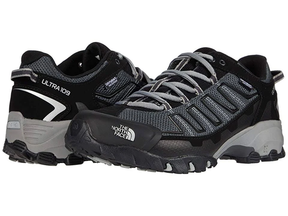 Whether you're tackling your trail run through wet weather or after the clouds have passed, The North Face Ultra 109 Waterproof trail-running shoes provide a full range of protection against water, mud, and rough, stony terrain hidden by shifting soil. Dryvent waterproof uppers pair a highly breathable performance mesh with a waterproof HydroSeal membrane to keep you protected while shedding excess heat. Ghillie lacing system allows for locked down support to moves with your stride. Highly durable TPU toe cap and PU-coated, leather mudguard wrapping the foot. Removable OrthoLite Hybrid footbed absorbs foot strikes and provides targeted energy return. Compression-molded EVA midsole. ESS midfoot shank. TPU Snake Plate forefoot protection. UltrATAC rubber outsole. Stability running shoe. Imported. Measurements: Weight: 15 oz Product measurements were taken using size 9, width D - Medium. Please note that measurements may vary by size. Weight of footwear is based on a single item, not a pair.