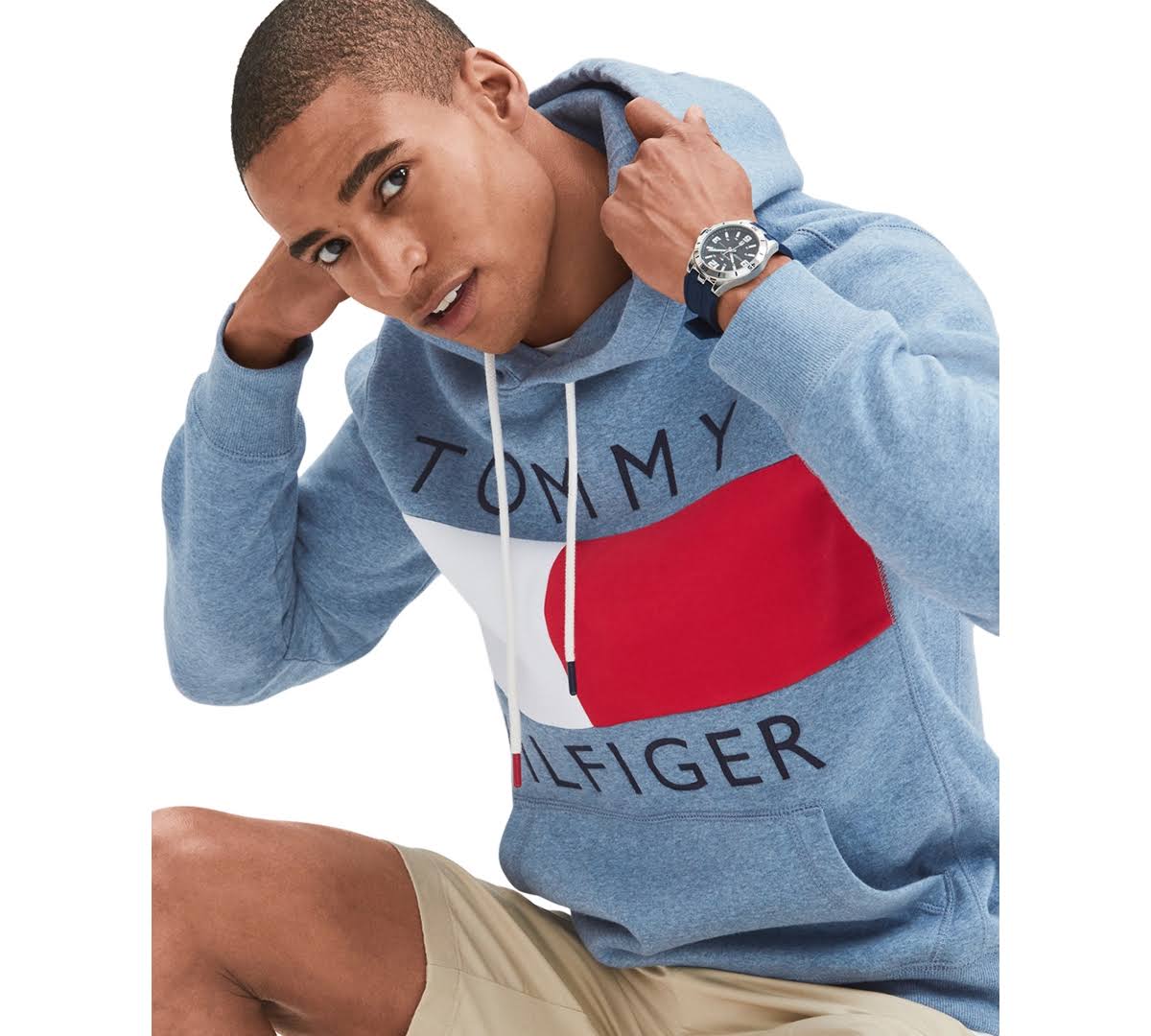 70% Cotton, 30% Polyester Imported Drawstring closure Machine Wash Tommy Hilfiger Sweatshirt for men with a design on front. Sweatshirt for men with a hoodie design. Men's sweatshirt with a ribbed collar and waistband. Tommy sweatshirt with embroidered flag on sleeve. Tommy Hilfiger Sweatshirt for men will be the perfect layer for when the weather gets cold.