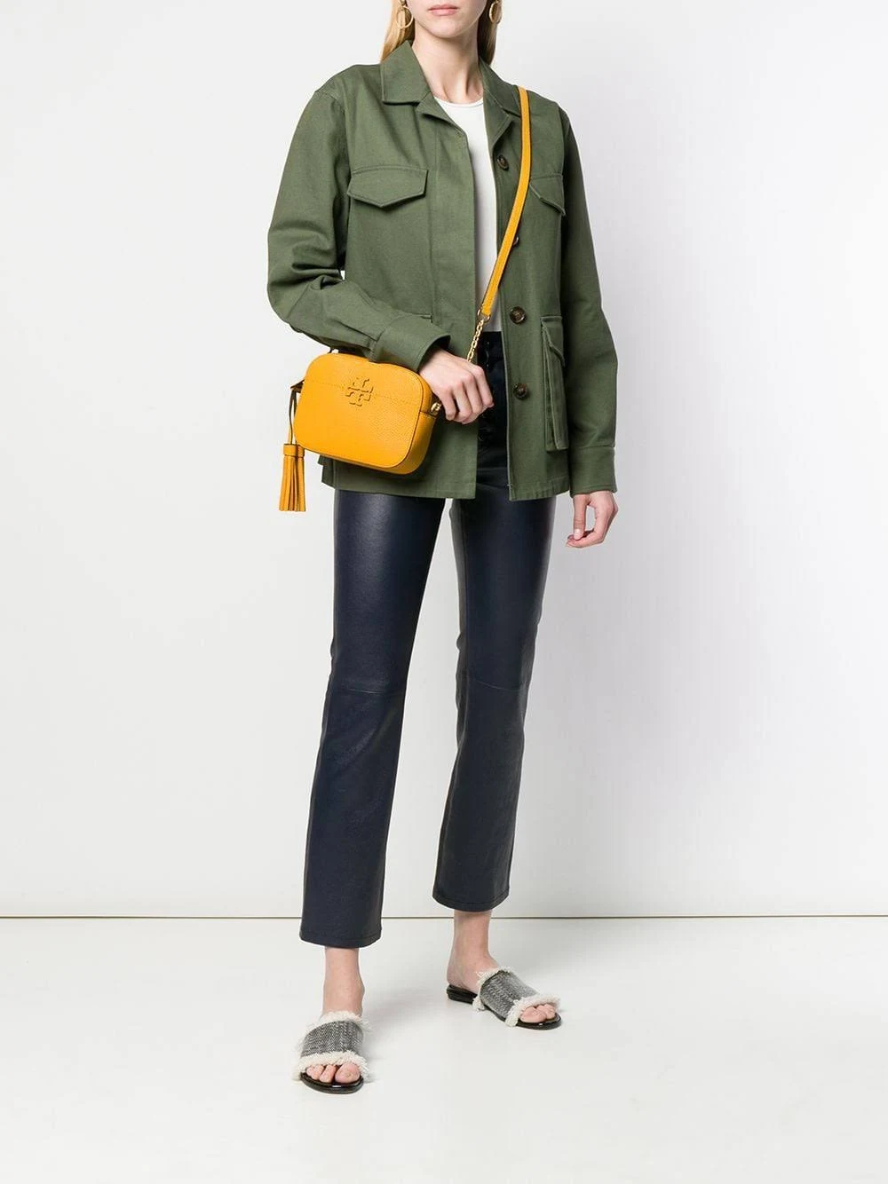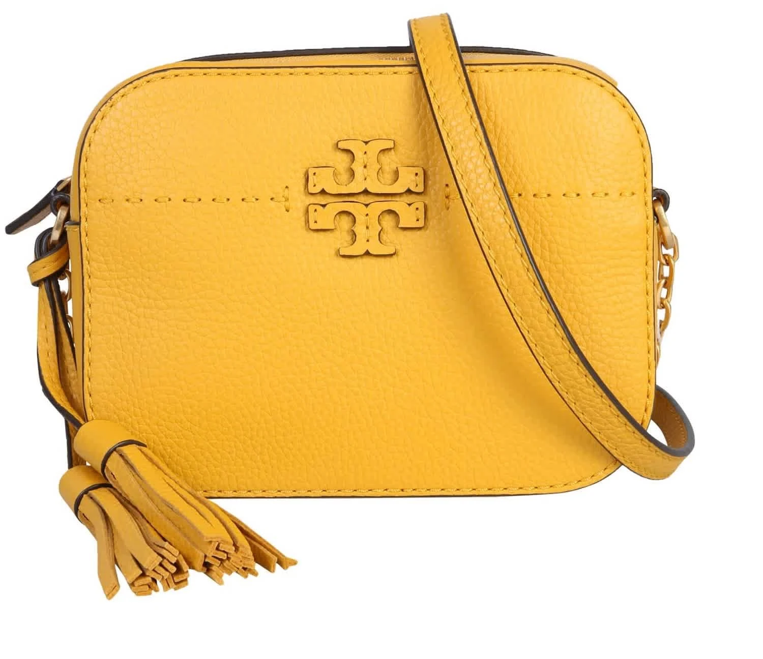 Burch's style has been described as being the ultimate in easy, understated chic and is associated with her signature T-logo medallion. This yellow leather McGraw camera bag from Tory Burch features a front logo patch, a top zip fastening, tassel detailing, a back slip pocket, a chain and leather strap and an internal slip pocket. This item is in size UNI and the color is Yellow.