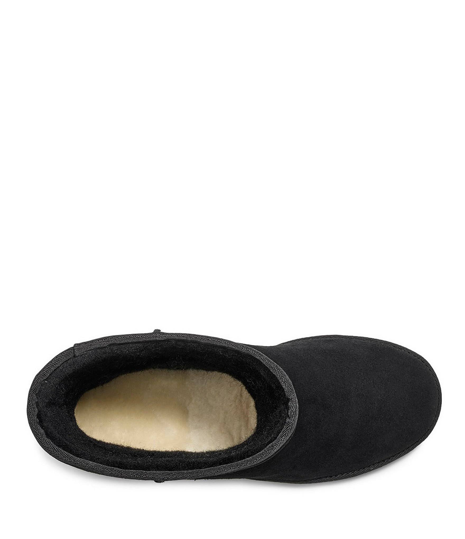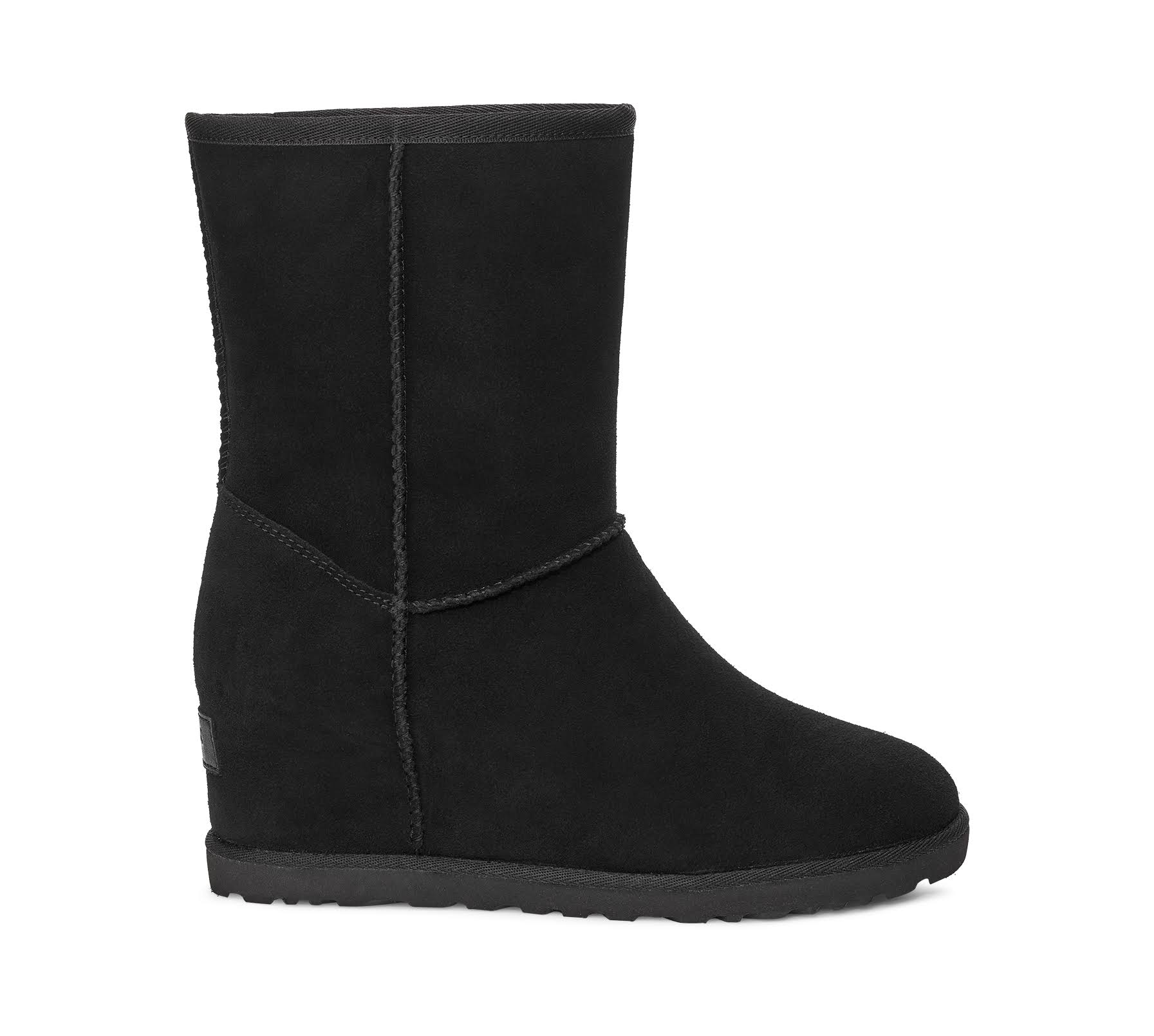 Women's Ugg Classic Femme Short - Black - Ankle boots Take your style to new, fashion-forward lengths with the UGG Classic Femme Short. Made from the highest quality twinface sheepskin suede that has been pretreated to repel water and stains. UGGpure lining and insole keep feet feeling breathable and dry. PORON footbed offers exceptional comfort throughout the day. Sleek wedge heel. New Treadlite by UGG outsole provides increased traction, durability, cushioning and flexibility. Please Note: Slight dye transfer may occur with darker colored sheepskin during first few wears. Real sheep fur or lamb has been artificially dyed and treated. Fur origin: Australia. Please note that measurements may vary by size. Weight of footwear is based on a single item, not a pair.