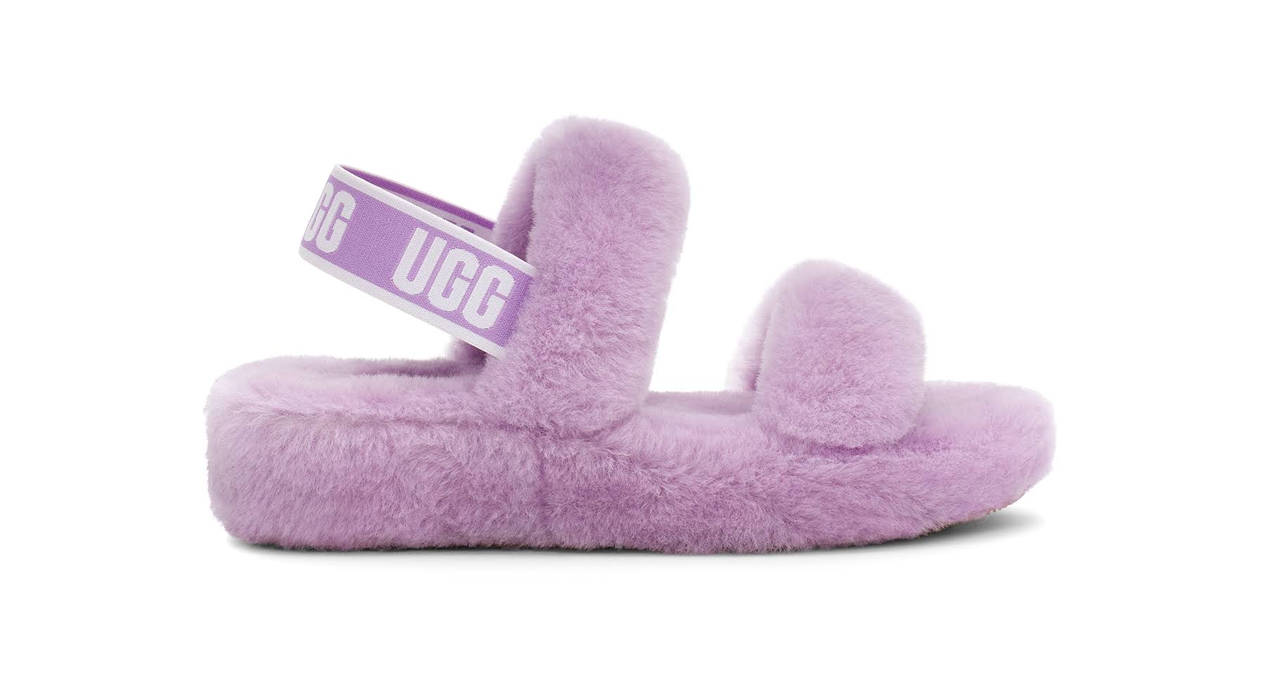 UGG Women's Oh Yeah Slipper, Lilac Bloom, 8 - Oh Yeah evolves our iconic Fluff Yeah Slide, incorporating a strappy silhouette for warm weather. Featuring the same soft sheepskin and versatile outdoor outsole as the original, it's just as easy to slide into, and plays well with anything from dresses to denims. Try pairing with white jeans and a striped top, a colorful midi dress, or cut-off shorts and an oversized tee. This product was made in a factory that supports women in our supply chain with the help of HERproject, a collaborative initiative that creates partnerships with brands like ours to empower and educate women in the workplace.
