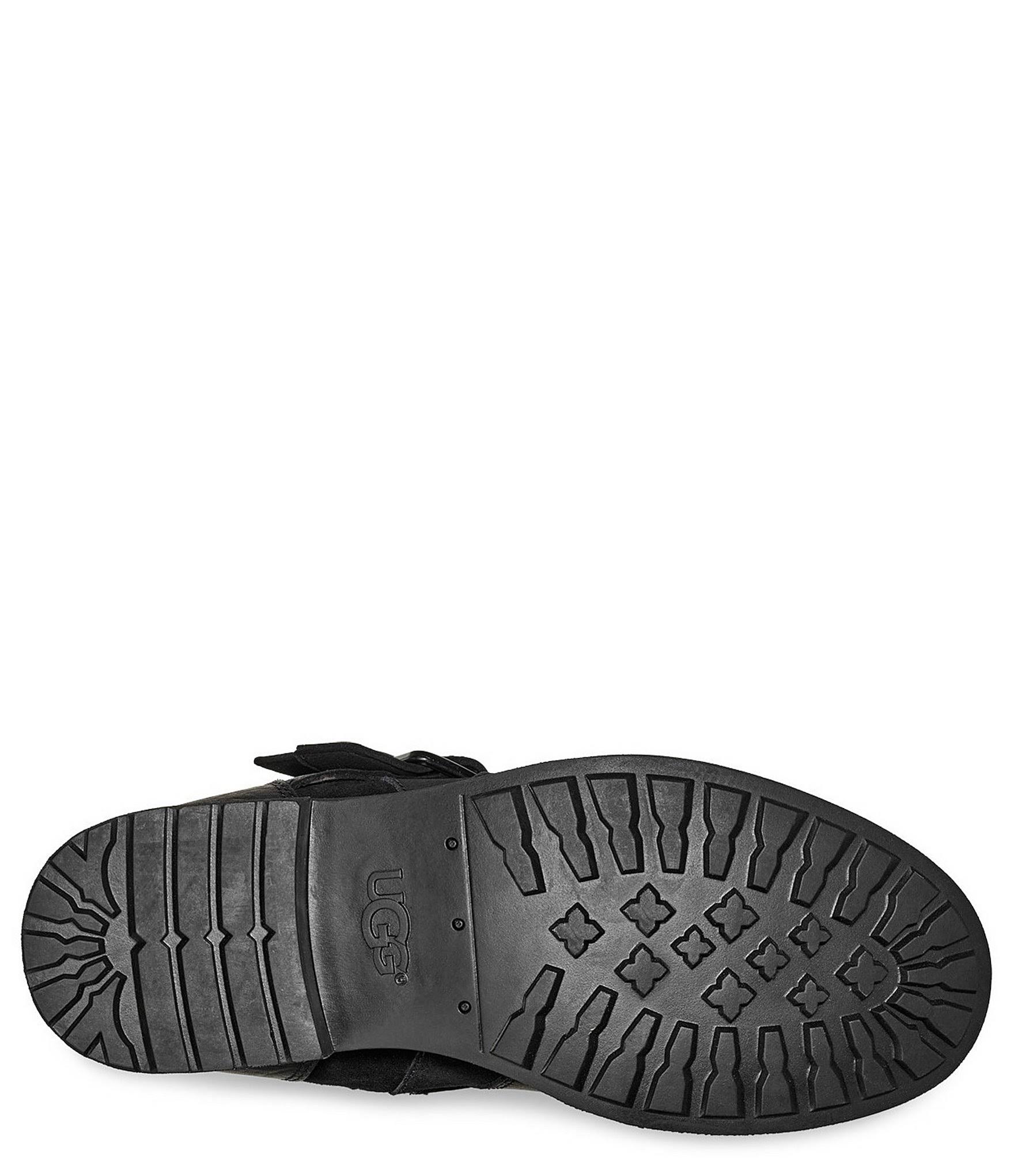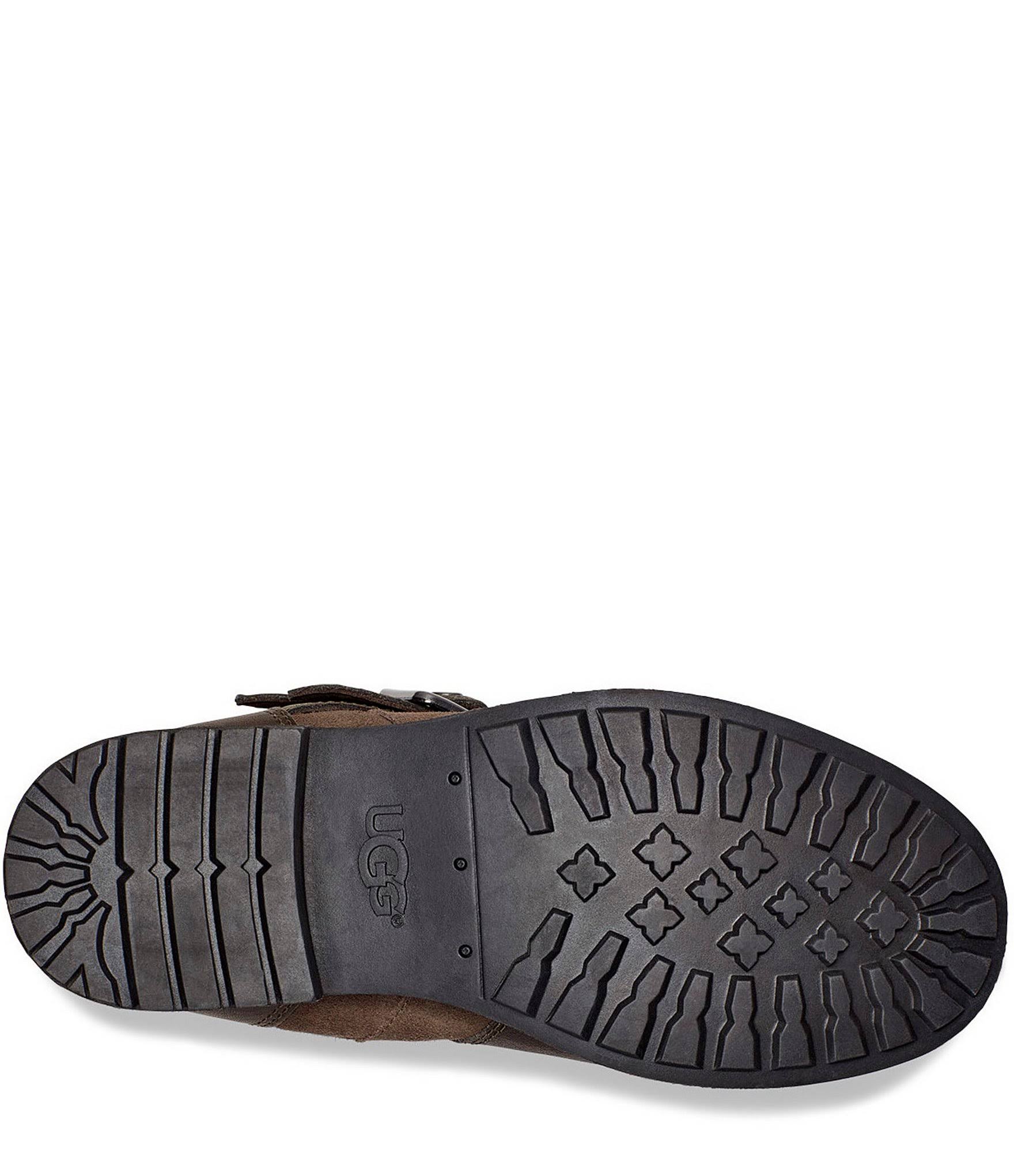 A mix of leather and suede bring cool texture to this essential moto boot. The all-weather style features seam-sealed waterproof construction and soft wool lining with a cushioned insole. Dual zip closure facilitates easy on/off, while the molded rubber outsole provides stability and excellent grip on most surfaces. Pair them with leggings and an oversized sweater.