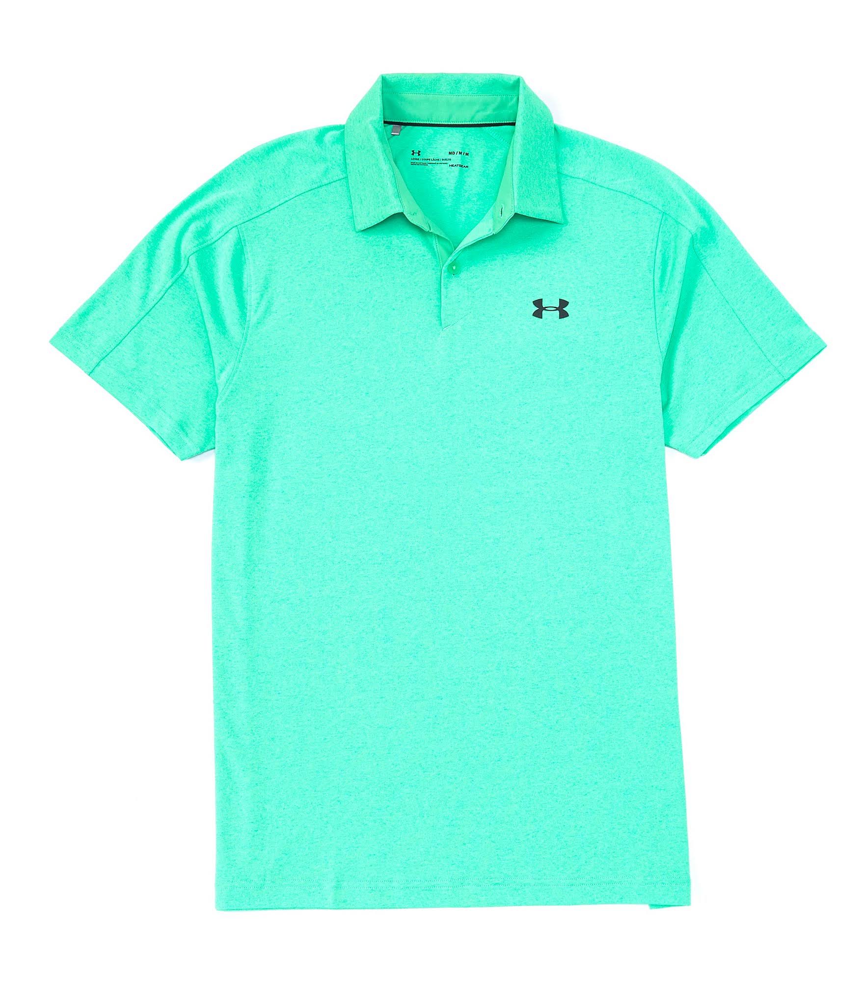 Under Armour Golf Vanish Polo - Men's Clothing : Vapor Green/Black/Black : The Under Armour Golf Vanish Polo keeps you dry and comfortable while getting your best game on the green. This comfortable golf shirt features a loose fit that is a generous, full cut for ultimate comfort and unrestricted mobility. All Under Armour Apparel features a tagless design or tear-away tag with no left-over pieces. Four-way stretch allows a wider range of movement and accelerates dry time. UA Microthread fabric has a quick-drying design that won't allow sweat to cling to you, won't chafe against your skin, and stretches without absorbing sweat. Anti-odor technology repels odor and inhibits bacterial growth for prolonged freshness. Fold-down collar. Two-button placket. Short sleeves. UA logo at left chest and nape. Straight hem with vented sides. 100% polyester. Machine wash, line dry. Imported. Measurements: Length: 27 1 2 in Chest Measurement: 19 1 2 in Sleeve Length: 14 in Product measurements were taken using size SM. Please note that measurements may vary by size.