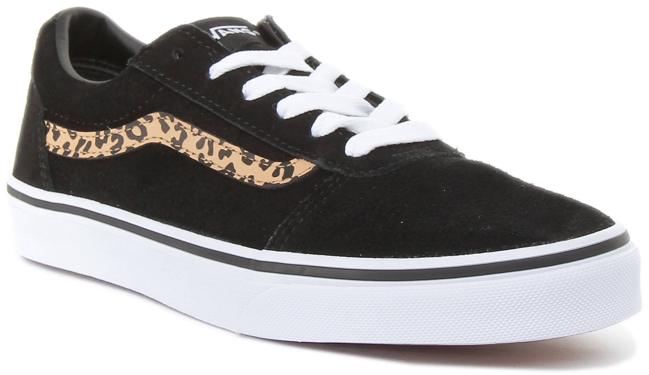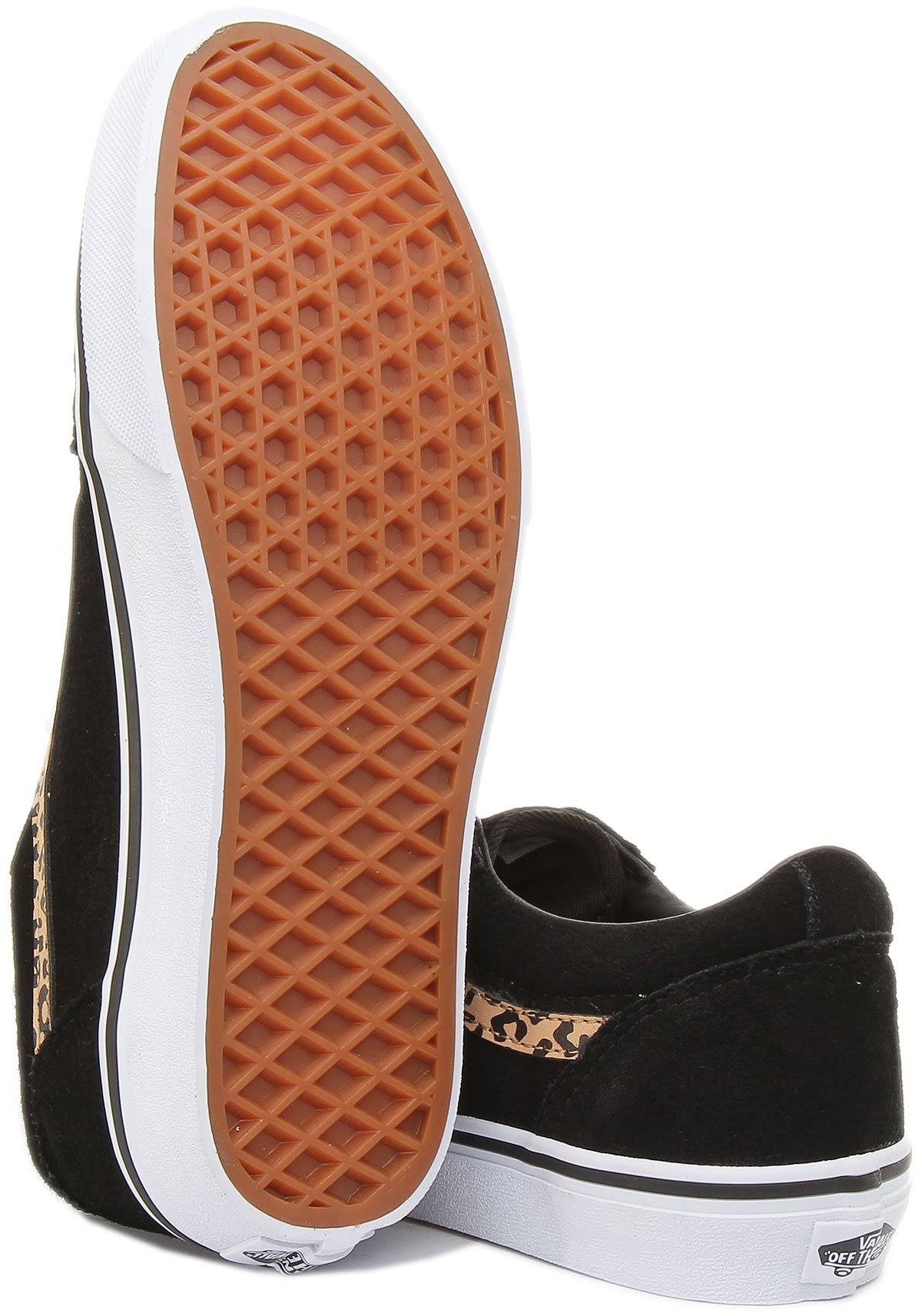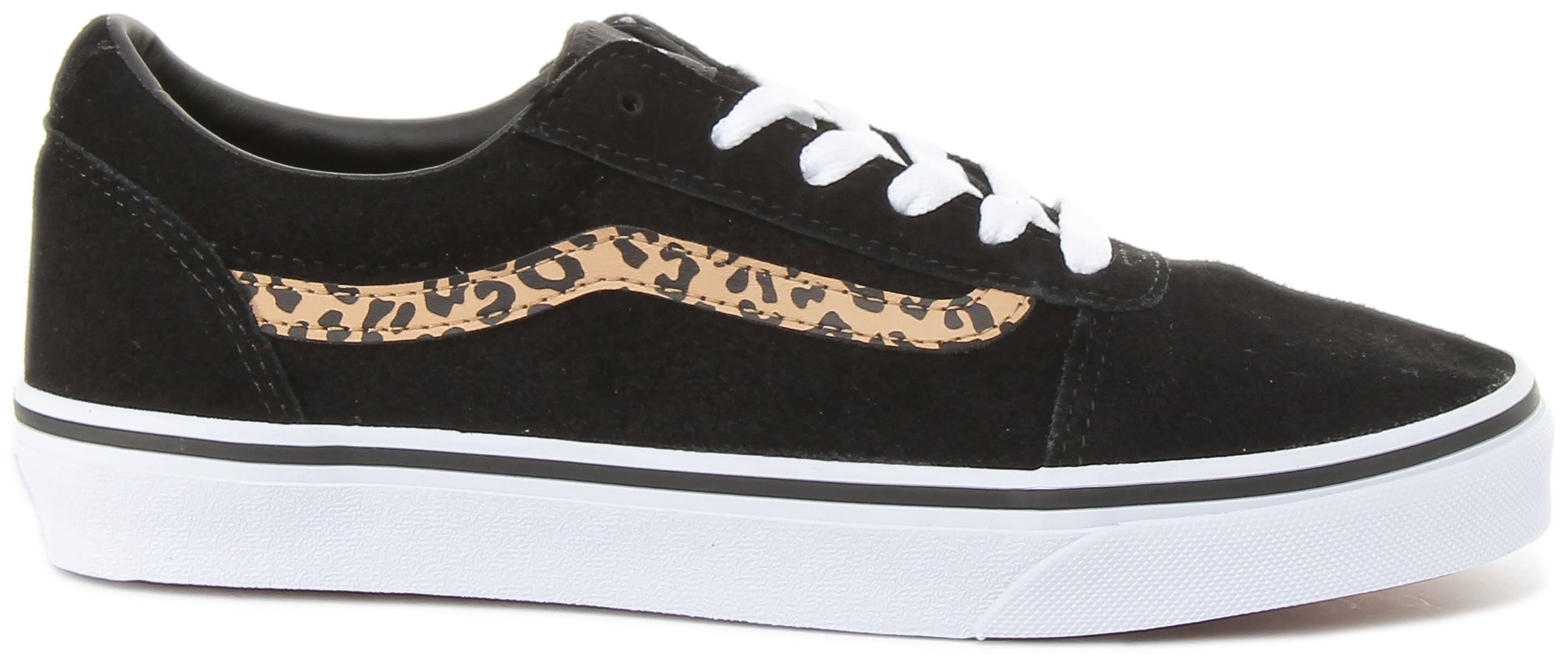 These low model Vans Ward sneakers have a casual design and are easy to combine. They feature an iconic leopard print side stripe, which will quickly become a favourite. The padded cuffs provide extra support and the nose is reinforced. These Vans sneakers offer high walking comfort. They are also characterised by several signature Vans patches. Typical of Vans, the vulcanised rubber sole has a waffled structure.