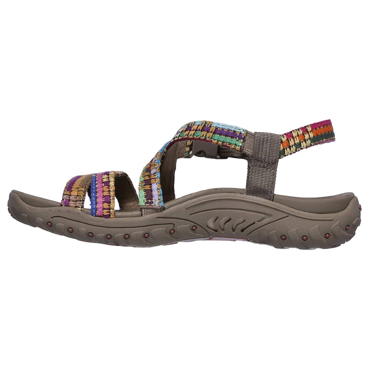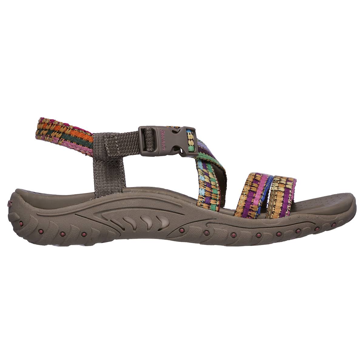 Stay comfortable and cute in the Women's Skechers Reggae Sew Me Sandal. Woven nylon fabric upper in an outdoor sandal style with an open toe. Slip-on entry. Slide-adjust side strap panel with quick-access release buckle design. Soft fabric lining with cushioned footbed. Durable traction outsole. 41113.