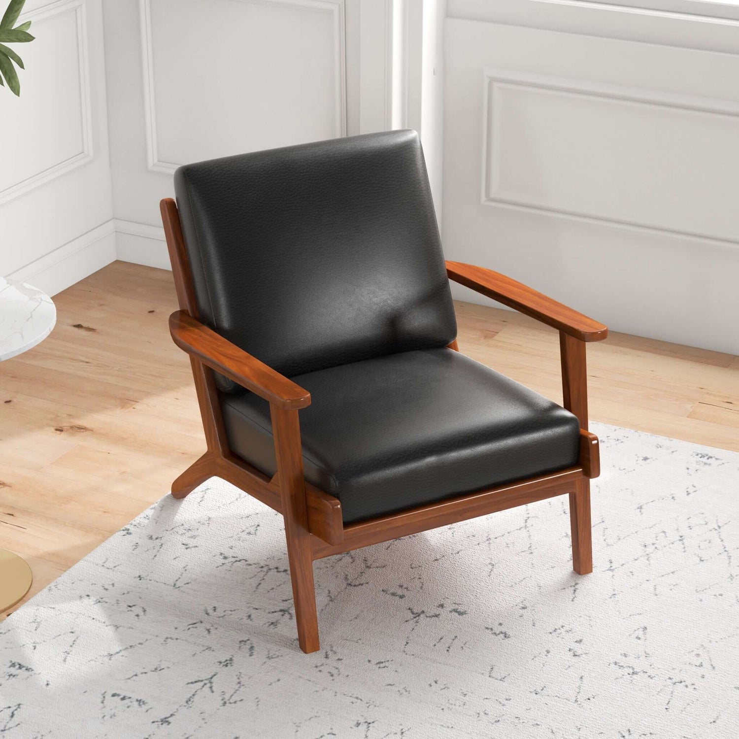 Connor Black Solid Wood Genuine Leather Lounge Chair