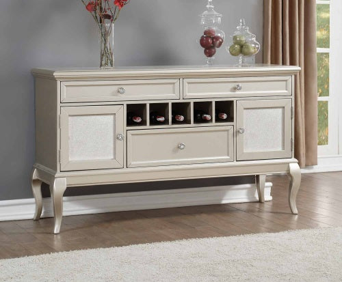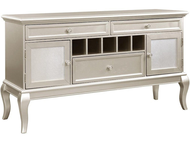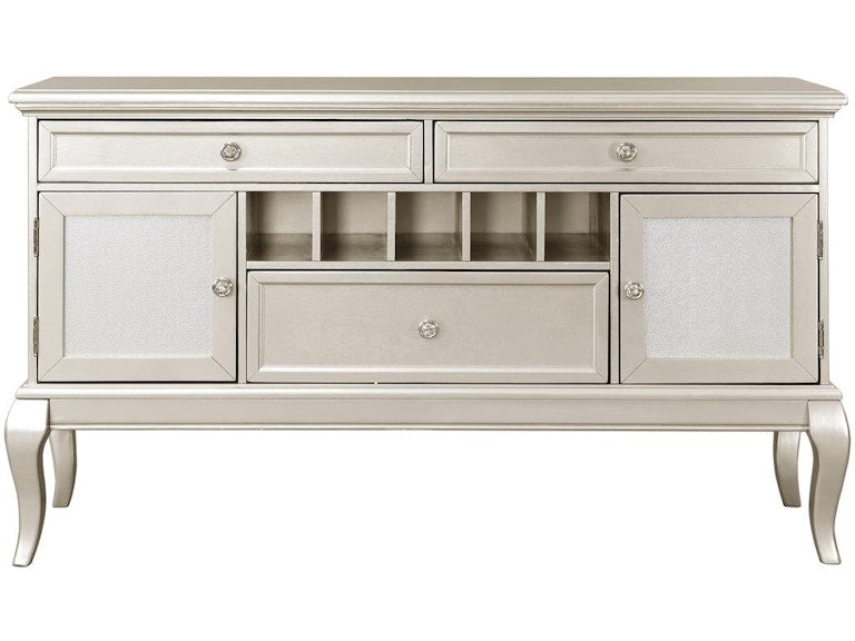 Product Description Blending traditional lines with modern glamour is the Crawford Collection. Finished in an eye-catching silver, the buffet/server will be a dramatic addition to your home's dining room. Cabriole legs lend traditional accent.