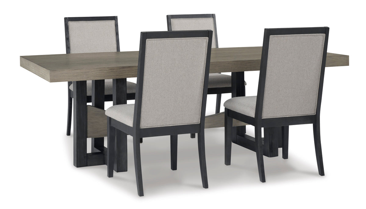 Foyland Light Gray/Black Rectangular Dining Set D989
